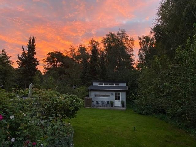 Der Garten ist von hohen Bäumen umgeben, ohne das Sonnelicht wegzunehmen. In der Einfahrt haben Sie für mehrere Autos Platz. Der Garten erbietet viele lauschigen Ecken. Sie können auf der Hügelspitze sitzen und die Aussicht bei dem Lagerfeuer genießen oder in dem Treibhaus plaudern, von dem Regen geschützt. Der Besitzer erlaubt, dass Sie Kräuter für das Kochen in dem Garten pflücken so lange Sie für die nächsten Gäste, die das Haus nachher gemietet haben, genügend hinterlassen. In dem Kräutergarten finden Sie Thymian, Origano, Rosmarin, Schnittlauch, Dill, gekräuselte und breitblättrige Petersilie, Liebstöckel, Salbei, Kartoffeln, Rhabarber, Blaubeeren und viel mehr.