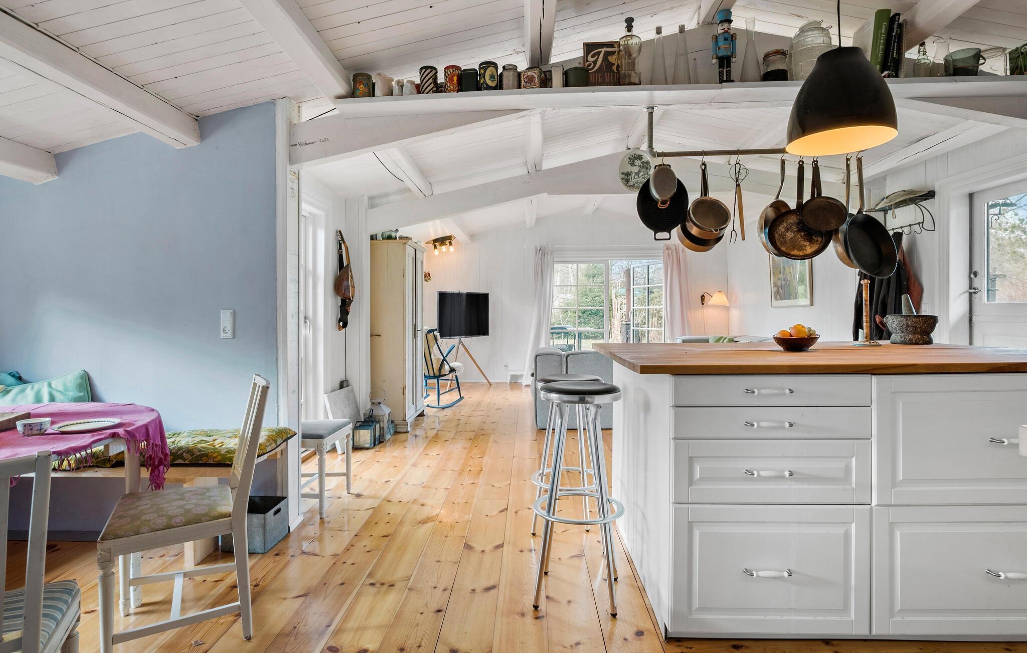 Genießen Sie Ihren Urlaub auf der ruhigen und grünen Insel Orö im Isefjord. Freuen Sie sich auf Idylle und die Unterkunft, die aus dem schönen Haupthaus sowie zwei Nebengebäuden besteht. Hier finden Sie alles vor, was Sie zum Wohlfühlen und Entspannen brauchen. Freuen Sie sich auf gemeinsame Kochabende mit der Familie, relaxen zusammen auf dem Sofa oder lassen die lauen Sommerabende auf der Terrasse ausklingen. Diese wird auch Ihre Kinder begeistern, denn Kletter- und Turnmöglichkeiten sind hier zu finden. Sehen Sie zu, wie sie durch den Garten toben und weitere Spielgeräte entdecken, bevor Sie sich zu Ihren Aktivitäten und Ausflügen aufmachen.