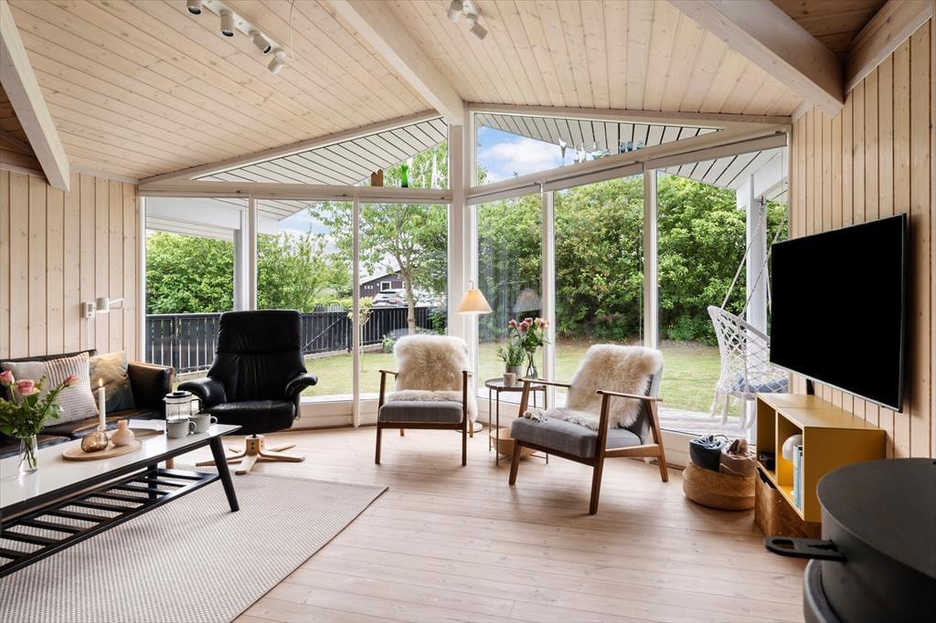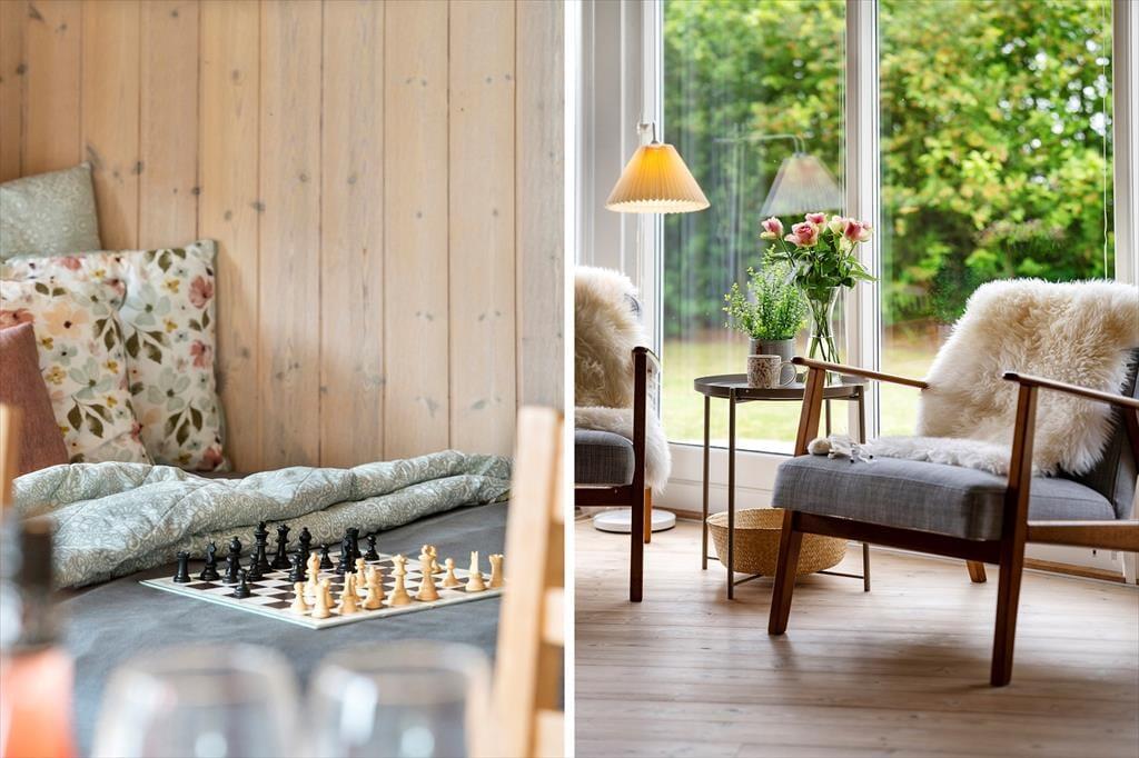 In der mit Schotter versehenen Grundstückseinfahrt können mehrere Autos abgestellt werden. Rund um das Ferienhaus erstreckt sich eine große Holzterrasse, die teilweise sogar überdacht ist. Dank der Gartenmöbel, der Liegestühle und der Loungemöbel können Sie sich auf erholsame Stunden unter dem hohen, nordischen Himmel freuen. Ihr Abendessen bereiten Auf dem Grill des Gartenhauses können Sie in entspannter Atmosphäre Ihr Abendessen zubereiten. Darüber hinaus geht es allabendlich sehr stimmungsvoll rund um die Feuerstelle zu. Ein Terrassenwärmer ist ebenfalls vorhanden. Gemütliche Momente verspricht selbstverständlich auch die Hängematte des Hauses.