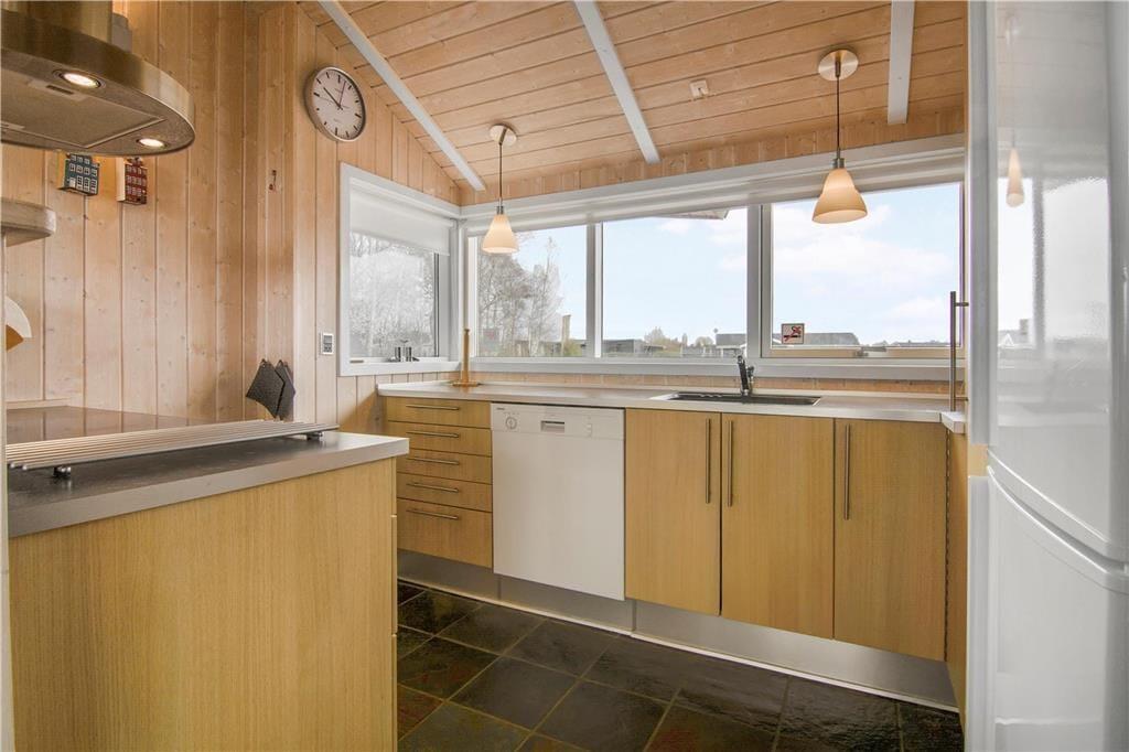 Wir heißen Sie in diesem geräumigen und gut gepflegten Ferienhaus in Pøt Strandby willkommen. Es umfasst 97 m² Wohnfläche und einen Schlafboden. Das Herz des Hauses ist der große Wohnraum mit integrierter Küche, in dem Sie Platz für die ganze Familie finden. Die großen Fensterfronten lassen viel Tageslicht herein und machen den Wohnraum zu einem wunderbaren Aufenthaltsort.