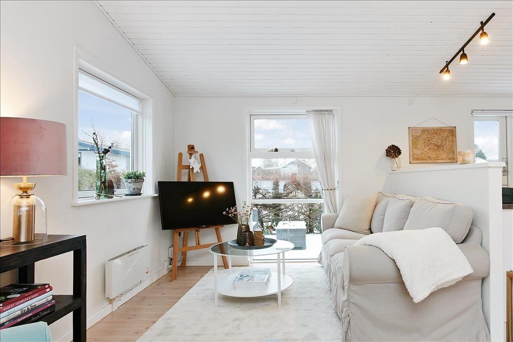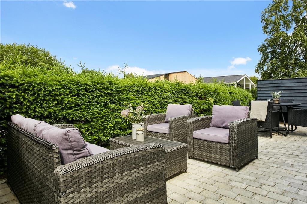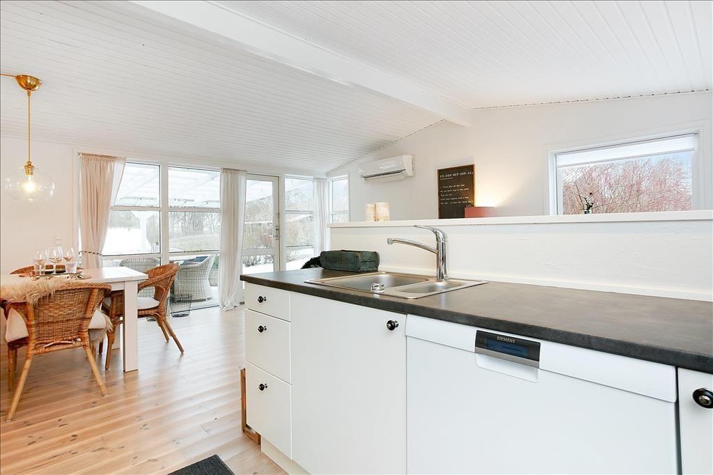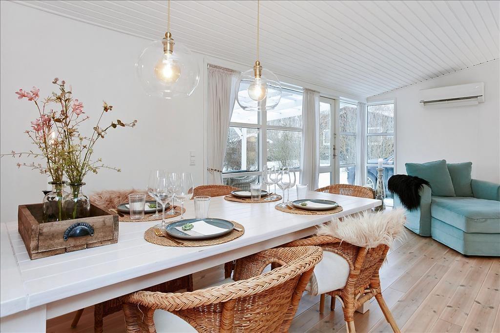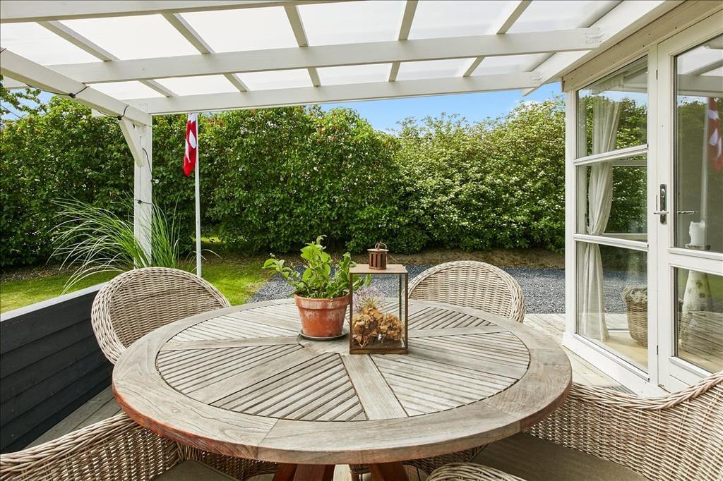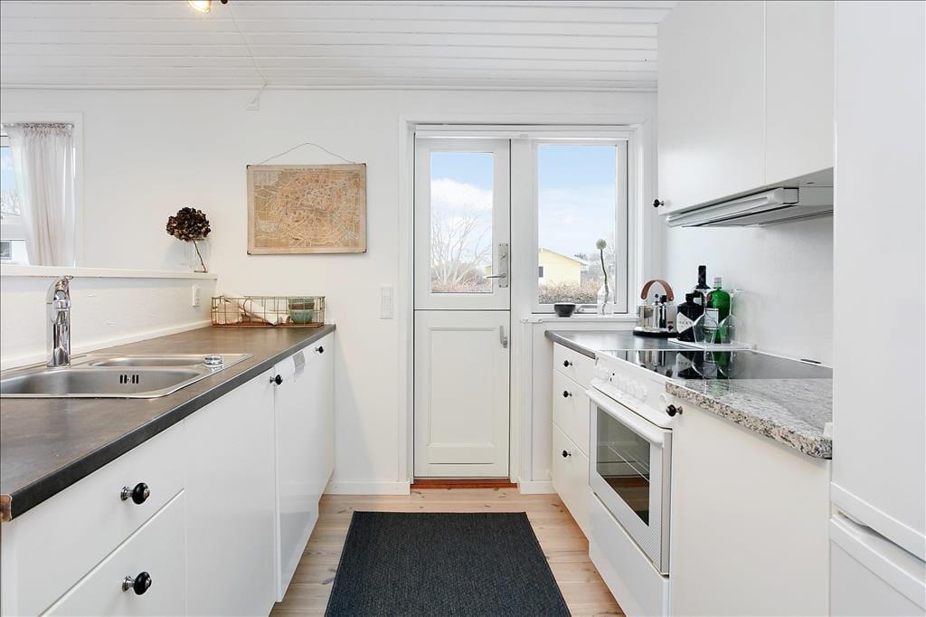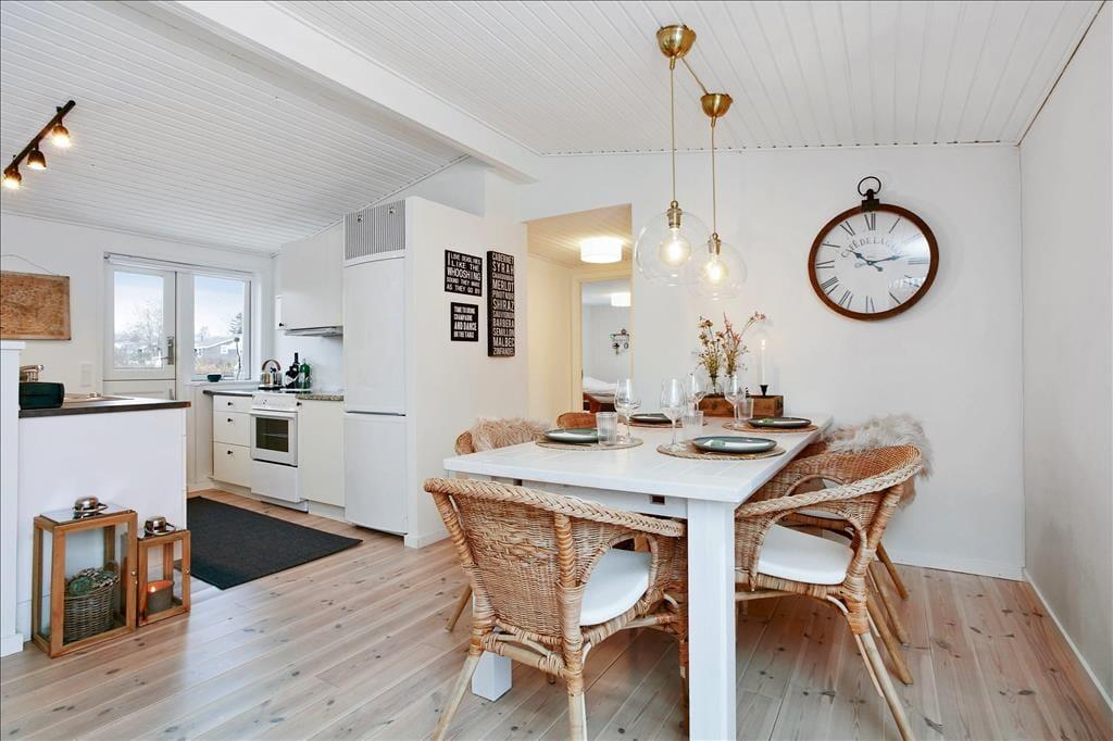 Herzlich willkommen in diesem außergewöhnlich gemütlichen Ferienhaus, das unter anderem mit seiner guten Lage im beliebten Ferienhausgebiet Pøt Strandby zu überzeugen weiß. Das Urlaubsdomizil begeistert mit echtem "Ferienhauscharme" und bietet Ihnen einen idealen Rahmen für schöne, erholsame Urlaubstage im Familien- oder Freundeskreis. Das Haus beherbergt drei Schlafzimmer und eignet sich daher sehr gut für 4 Erwachsene und 2 Kinder, die sich auf zwei Schlafzimmer mit je einem guten Doppelbett mit Boxmatratzen und auf einen Schlafraum mit einem schönen Etagenbett verteilen können. Das Herzstück des Hauses bildet der direkt mit dem Wohnraum verbundene Küchen- und Essbereich. Die Küche beinhaltet alles, was Sie während Ihres Aufenthalts benötigen, inklusive eines Geschirrspülers. In direkter Verbindung zur Küche liegt der Wohnraum, der ausreichend Platz für alle Mitreisenden bietet. Hier können Sie mit Ihrer Familie am Esstisch wunderbar die Mahlzeiten genießen und sich anschließend in aller Gemütlichkeit auf dem Sofa niederlassen. Für Unterhaltung und Abwechslung sorgt dabei ein Fernseher mit dänischen, deutschen, schwedischen und norwegischen Sendern. Zudem können Sie über Ihr eigenes Streaming-Abo Internetinhalte, Serien und Filme via Apple TV oder Chromecast auf den Fernseher streamen.