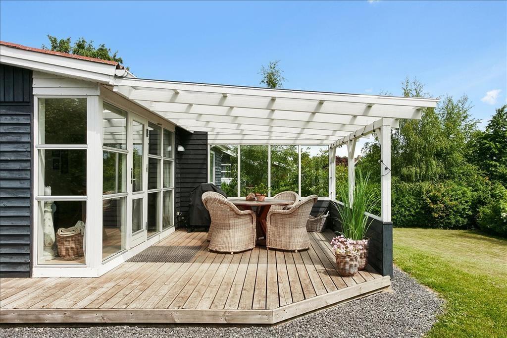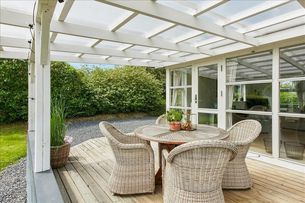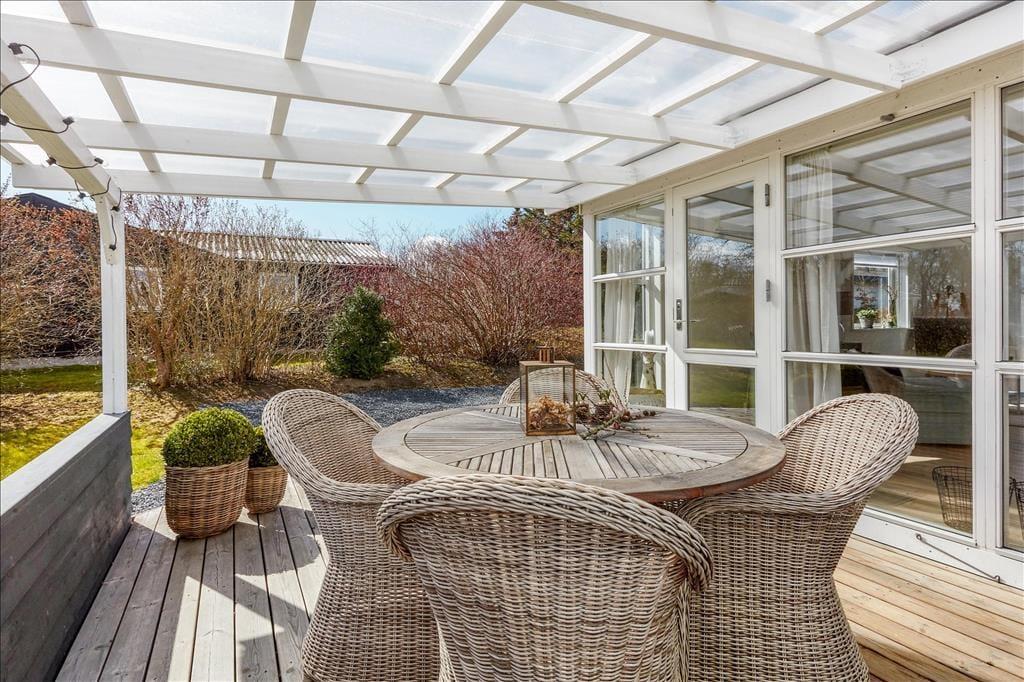 Das Ferienhaus ruht ansprechend platziert auf einem schönen Grundstück. An den meisten Stellen rund um das Haus halten Sie sich völlig ungestört auf. Die Terrassen, bei denen es sich um offene und überdachte Terrassenareale handelt, werden schnell zu Ihren bevorzugten Aufenthaltsplätzen avancieren. Hier können Sie in geselliger Runde die Mahlzeiten genießen, Gesellschaftsspiele spielen und sich bestens erholen. Zahlreiche schöne Gartenmöbel, Loungemöbel, ein Sonnenschirm und ein Weber grill laden zu herrlichen Stunden unter dem hohen, nordischen Himmel ein.