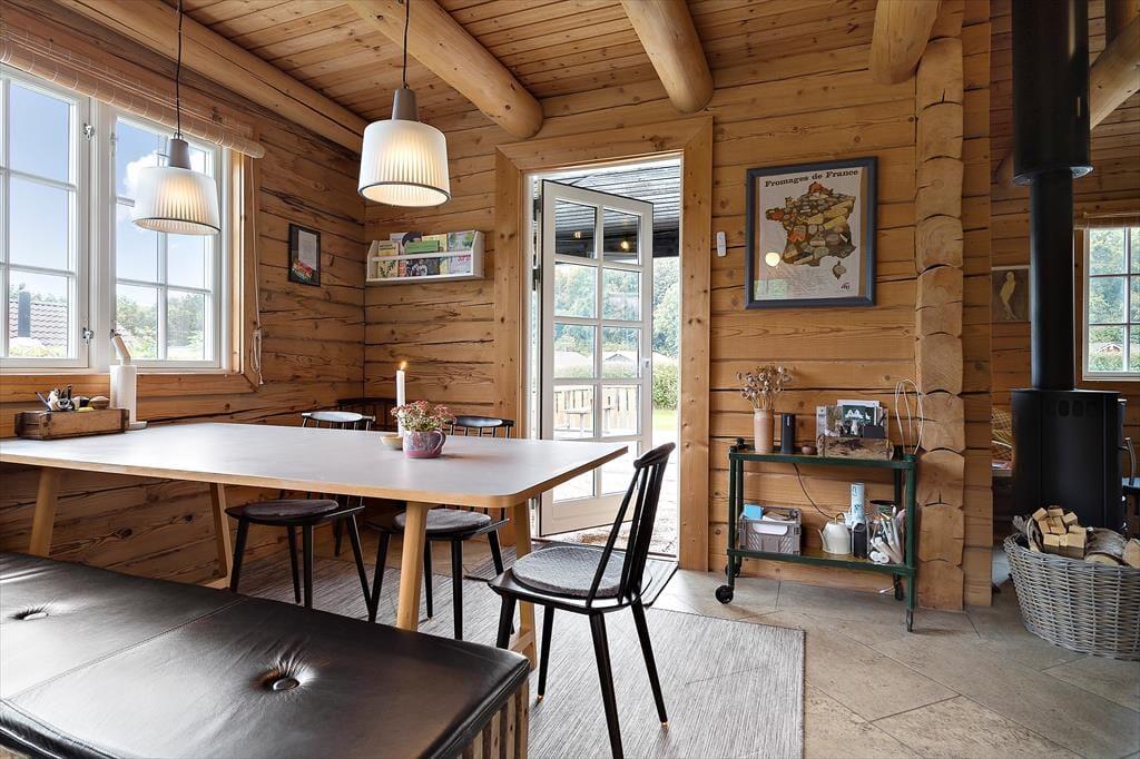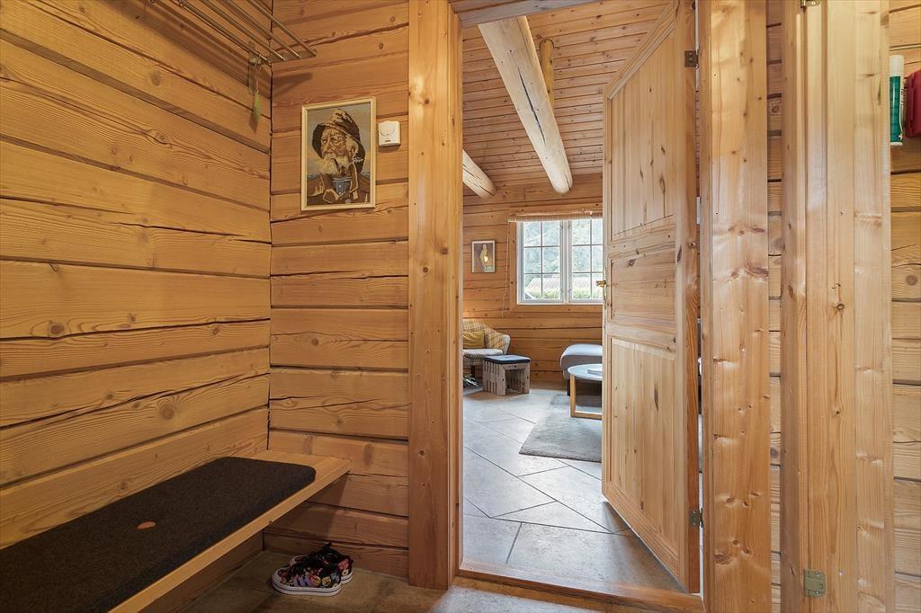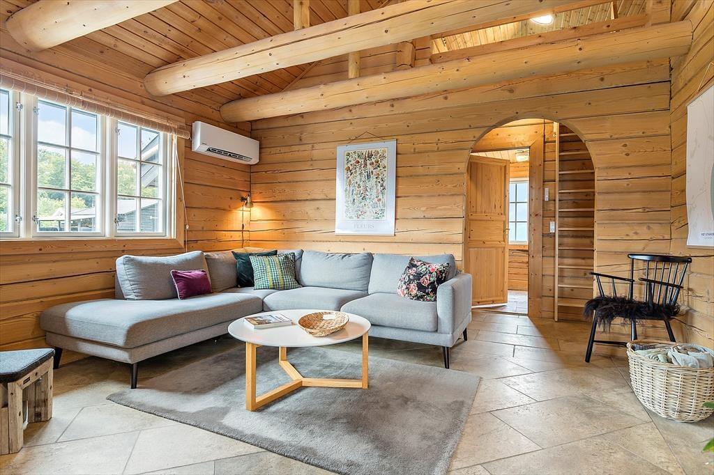 Nur 200 Meter abseits der Ostsee erwartet Sie dieses einzigartige und authentische Blockhaus aus sibirischer Lerche. Unmittelbar nach dem ersten Betreten spüren Sie die Wärme und Gemütlichkeit, die zu erholsamen, wertvollen Stunden im Familienkreis einlädt. Das Blockhaus verfügt über einen geräumigen Küchen- und Essbereich, der offen mit dem Wohnraum verbunden ist. Im Wohnraum sorgen ein Ecksofa und ein Kaminofen für ein Maximum an Gemütlichkeit und Atmosphäre. Die fünf Schlafplätze verteilen sich auf zwei Schlafräume. Ein schönes Badezimmer mit einem Waschtrockner ist ebenfalls vorhanden. Hinzu gesellen sich zwei geräumige Schlafböden. Von einem der Schlafböden blicken Sie auf das Wasser. Das Blockhaus wird mittels einer Fußbodenheizung beheizt, die durch den Kaminofen und eine Wärmepumpe mit zusätzlicher Kühlfunktion ergänzt wird.
