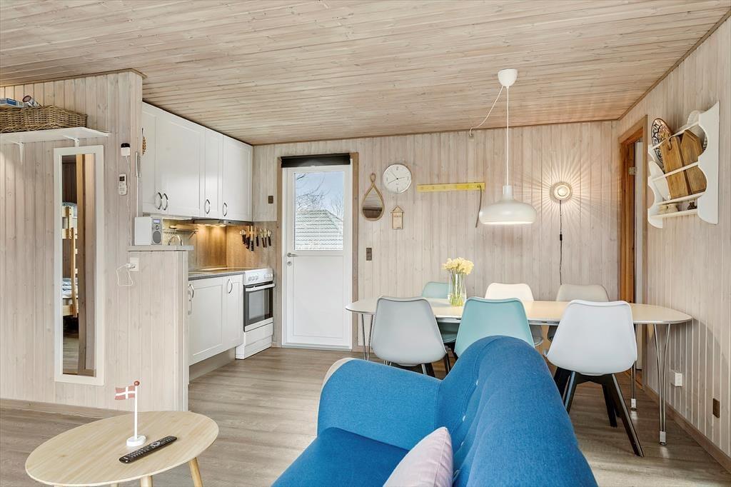 Das Wohnzimmer ist geprägt durch den großzügigen Lichteinfall, der für eine stimmungsvolle und entspannte Atmosphäre sorgt. Hier können Sie es sich auf dem Sofa oder im Sessel bequem machen und fernsehen oder ein Buch lesen. Das Ferienhaus verfügt über drei Schlafzimmer für angenehme Nachtruhe nach einem langen Tag voller Aktivitäten. WLAN und Chromecast sind im Haus vorhanden, sodass Sie Ihre eigenen Inhalte auf den Fernseher streamen können.