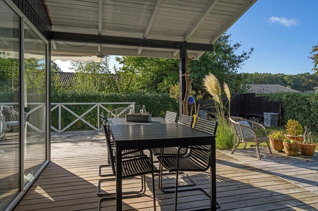 In diesem gemütlichen Haus kannst du die Urlaubsstimmung im Haus und im Garten spüren. Das Wohnzimmer ist offen und einladend, verbunden mit der Küche. Hier könnt ihr entspannen und das schöne Licht genießen, dass durch die Fenster fällt. Wie sieht es aus mit einem gemeinsamen Brettspiel oder einer guten Mahlzeit? Vom Wohnzimmer aus tretet ihr direkt auf den überdachten Teil der Terrasse, der die Sommermonate verlängert. Das Haus ist ausgestattet mit drei guten Schlafzimmern und einem schönen Badezimmer.