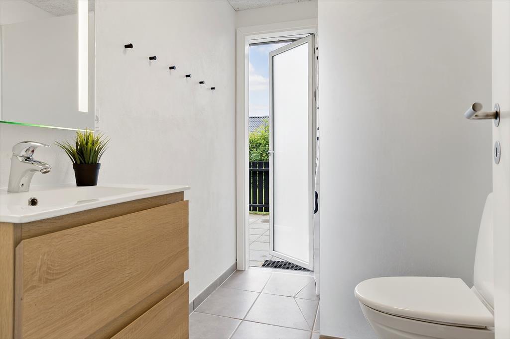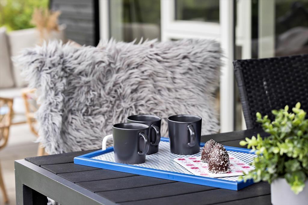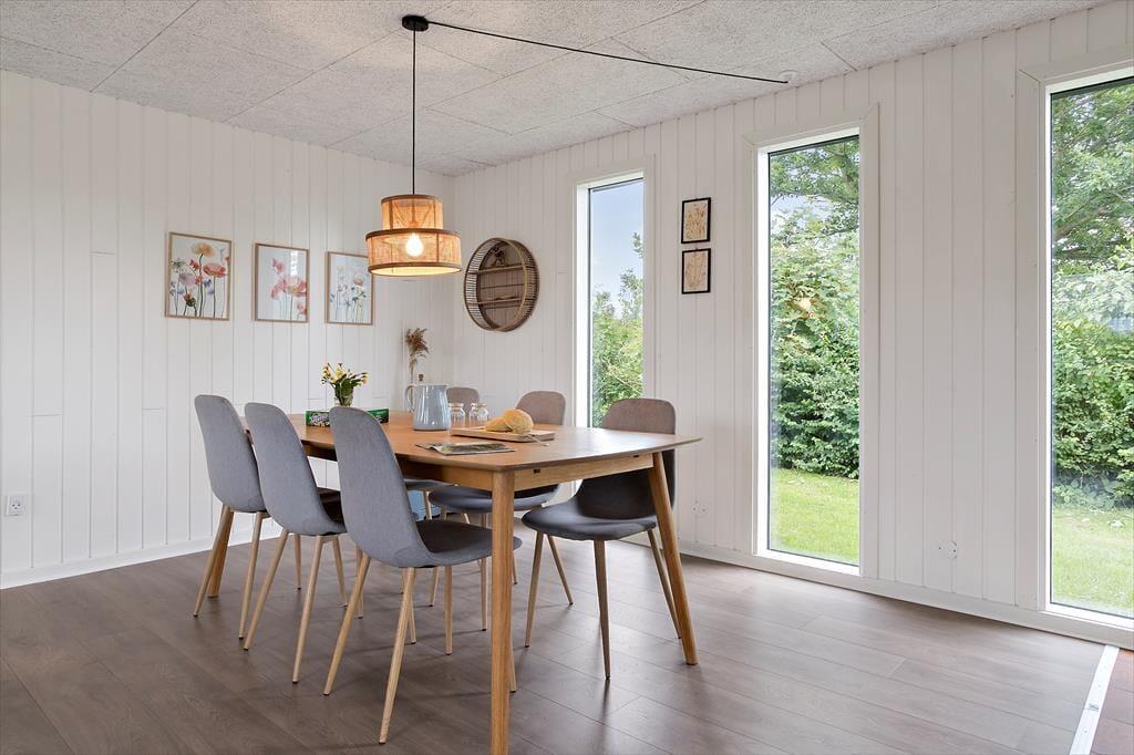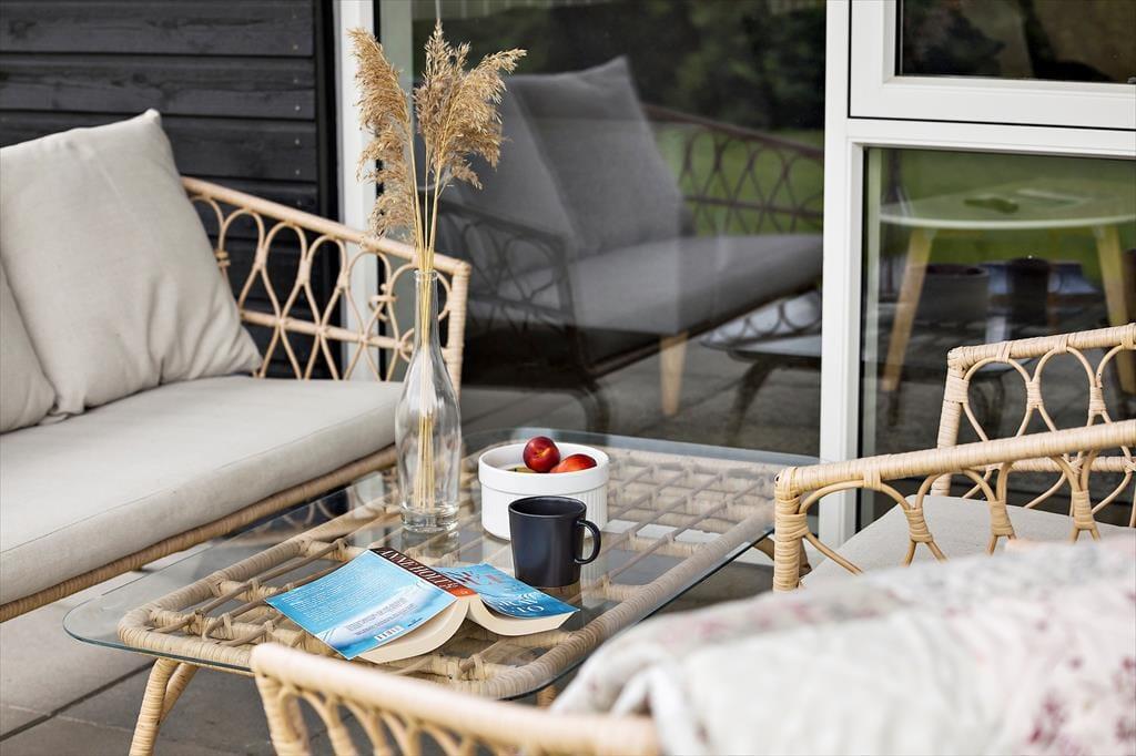 Die Terrasse ist das Herzstück des Outdoor-Lebens in diesem Ferienhaus und strahlt dänischen Sommer und Urlaubsfreude aus. Hier könnt ihr euch von den Düften des Grillens verzaubern lassen und die Erlebnisse des Tages mit euren Liebsten teilen, während ihr den Garten oder das Wildnisbad genießt. Es ist fast unmöglich, sich nicht von dieser fantastischen Atmosphäre mitreißen zu lassen. Spürt die Stimmung und die Nähe, während die Sonne langsam am Horizont untergeht und sich die Ruhe um euch legt.