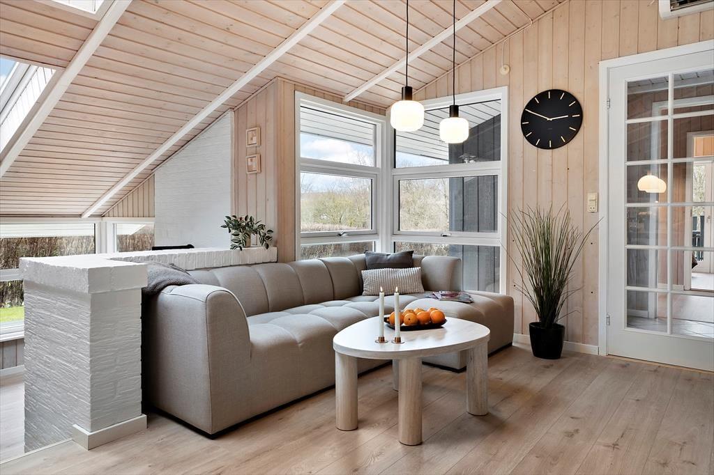 Sobald Sie das Ferienhaus betreten, spüren Sie die gemütliche Atmosphäre und das Gefühl, dass hier genug Platz ist, um den Urlaub gemeinsam zu genießen. Die großen, nach Süden ausgerichteten Fenster lassen viel Licht herein und schaffen eine Verbindung zwischen den Innenräumen und dem Garten. Die hellen Holzwände sorgen für eine angenehme Ferienhausstimmung und bilden den perfekten Rahmen für ein großartiges Urlaubserlebnis.