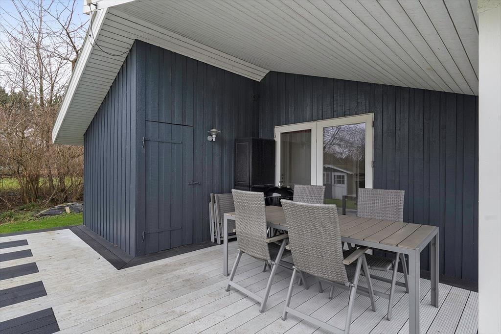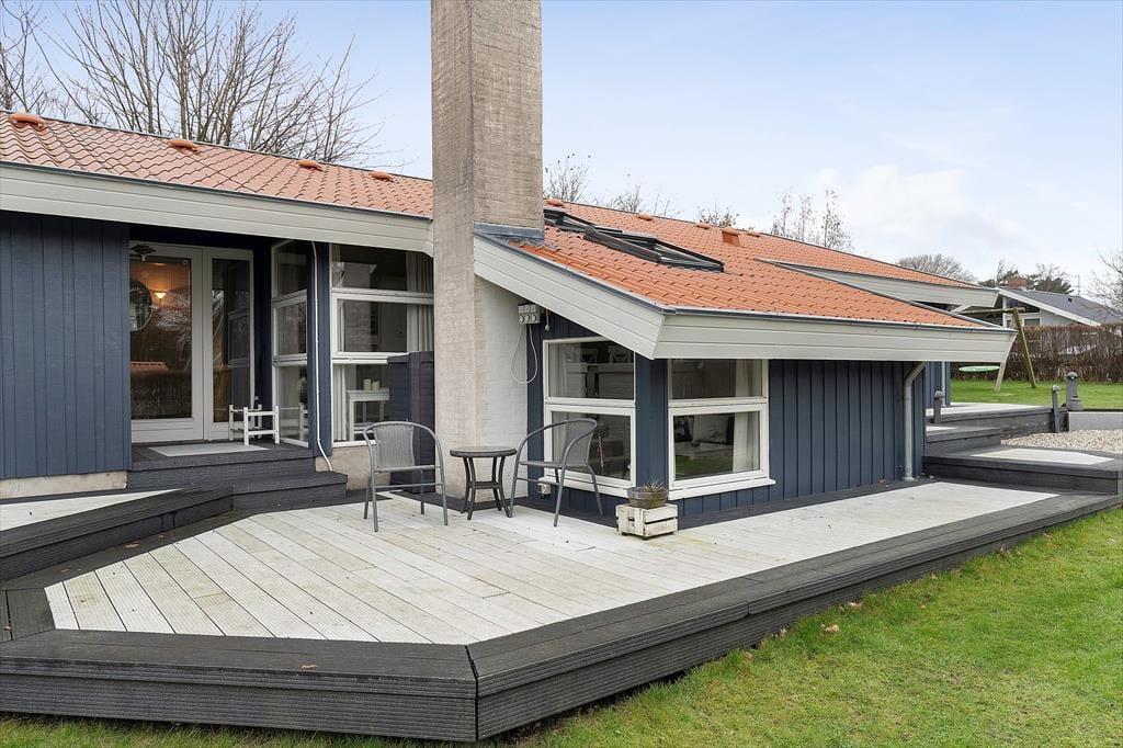 Das Ferienhaus liegt in der malerischen Ferienhaussiedlung Pøt Strandby in der Nähe von Juelsminde. Die Lage in der Nähe von Wald und Strand ermöglicht es Ihnen, den Urlaub in ruhiger Umgebung zu genießen. Der große Garten bietet eine weitläufige Rasenfläche, ideal für Ballspiele oder einfach zum Entspannen. Eine Holzterrasse umgibt das Haus und wird schnell zu Ihrem Lieblingsplatz für den Morgenkaffee und entspannte Nachmittage. Die nach Süden ausgerichtete Terrasse ist perfekt für Abendessen und lauschige Sommerabende unter freiem Himmel.