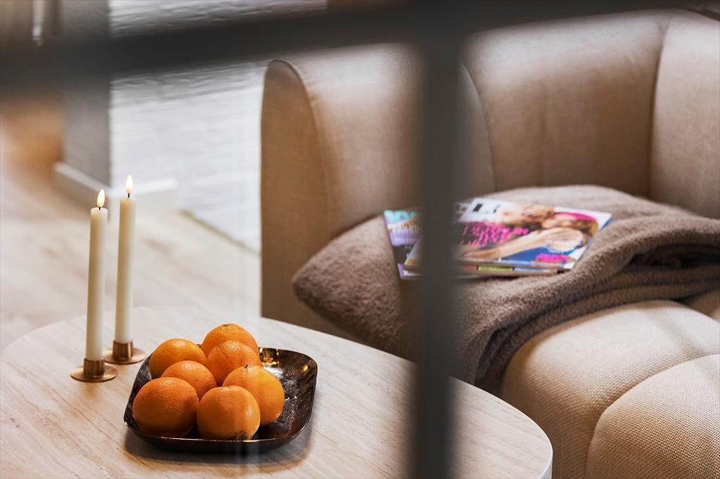 In der Sofaecke mit den großen Fenstern sorgt der Kaminofen für eine warme und einladende Atmosphäre. Hier können Sie sich mit einem guten Buch oder einem Film entspannen – der perfekte Ort, um zur Ruhe zu kommen.
