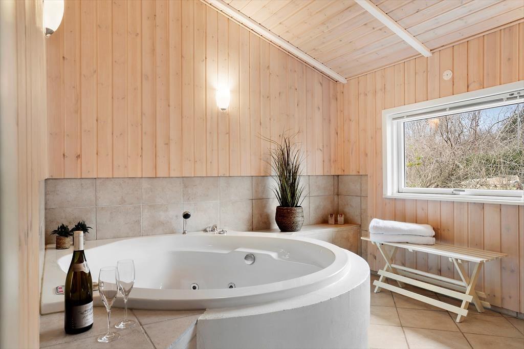 Das Ferienhaus verfügt über fünf Schlafzimmer und bietet Platz für bis zu acht Personen und 2 Kinder. Vier der Schlafzimmer sind mit Doppelbetten ausgestattet, während das fünfte Einzelbetten hat. Die Badezimmer sind geräumig, und das größte ist mit einem Whirlpool und einer Sauna ausgestattet – ideal zum Entspannen nach einem erlebnisreichen Tag. Zudem stehen eine Waschmaschine und ein Trockner zur Verfügung, sodass Sie während Ihres Aufenthalts problemlos alltägliche Aufgaben erledigen können.