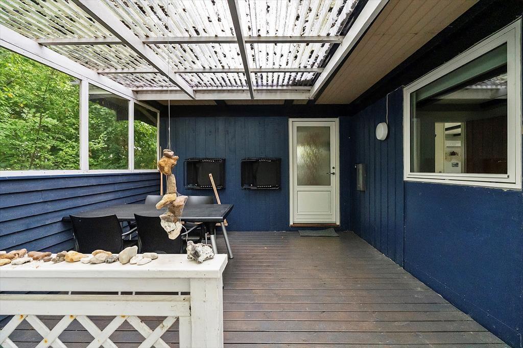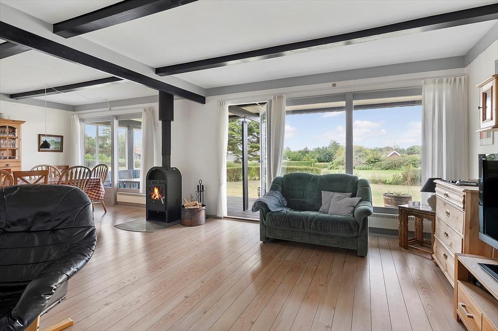 Das Sommerhaus liegt nur wenige Gehminuten vom Strand entfernt. Draußen erwartet dich ein großer Garten – bereit, entdeckt und in vollen Zügen genossen zu werden. Die überdachte Terrasse lädt zu langen Abenden mit Grillgerichten und gemütlichen Gesprächen unter dem Sternenhimmel ein. Alles ist darauf ausgelegt, dass du abschalten und den Moment genießen kannst.