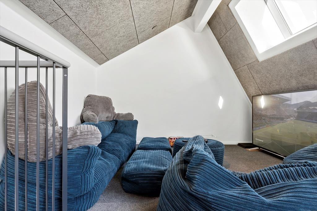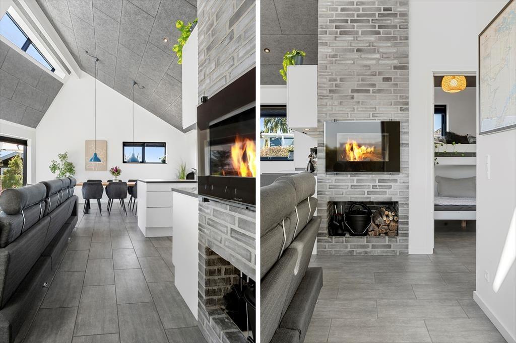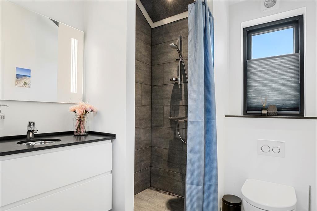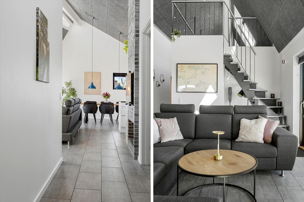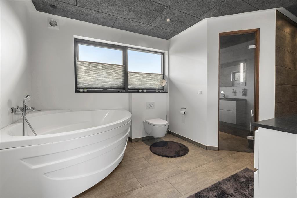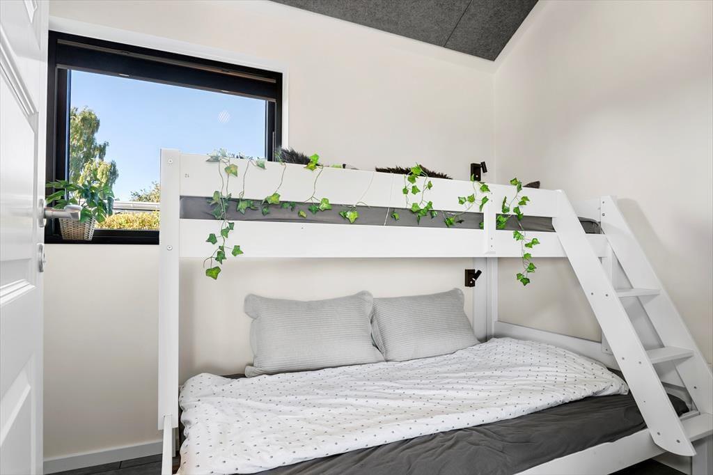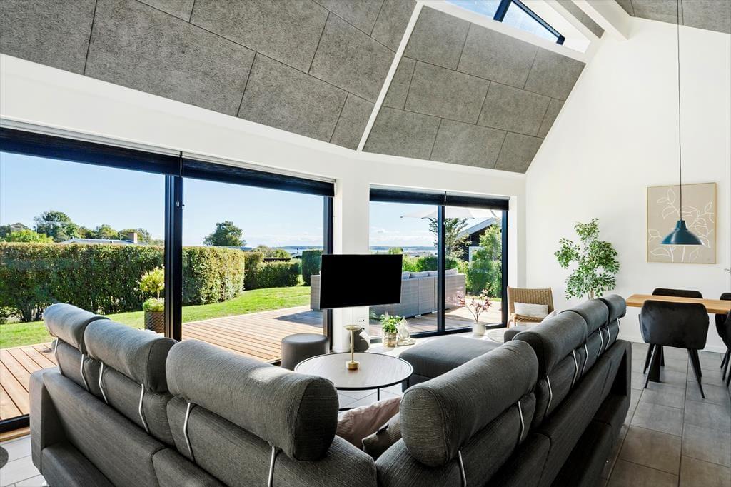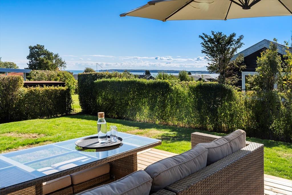 Willkommen in diesem fantastischen, gut ausgestatteten und zugleich ausgesprochen gemütlichen Ferienhaus im beliebten Ferienhausgebiet Pøt Strandby bei Juelsminde. Das 144 m² große Urlaubsdomizil bietet deiner Familie oder dir und deinen Freunden einen perfekten Rahmen für gelungene Urlaubstage. Das gesamte Mietobjekt ist mit einem Fliesenboden samt integrierter, moderner Fußbodenheizung versehen. Dank des Luft-Wasser-Heizsystems, das sowohl umweltfreundlich als auch energieeffizient ist, ist das Ferienhaus das ganze Jahr über sehr gut nutzbar. Darüber hinaus ist das Mietobjekt schallisoliert und verfügt über eine gute Akustik. Die drei Schlafräume mit insgesamt sechs Schlafplätzen sind gut verteilt. Dein Ferienhaus bietet zwei ansprechende Badezimmer, von denen eines mit seiner Sauna und der Badewanne zu traumhaft erholsamen Momenten einlädt. Wohnraum, Essbereich und Küche fügen sich zu einem wunderschönen, offenen Aufenthaltsbereich zusammen, der das Herzstück deines Ferienhauses bildet. Der Raum verzaubert mit einer fantastischen Aussicht in Richtung Meer, die alltägliche aber auch festliche Stunden im Familienkreis in schönster Weise untermalt. Noch beeindruckender wirkt die Aussicht auf dem eingezogenen Hängeboden, auf dem du dich in aller Ruhe niederlassen, ein gutes Buch zur Hand nehmen oder einfach die Aussicht genießen kannst, die deiner Fantasie Flügel verleiht. Für Abwechslung und Unterhaltung sorgen bei Bedarf die PlayStation und der Fernseher. Kostenlos nutzbares Internet steht selbstverständlich ebenfalls zur Verfügung.