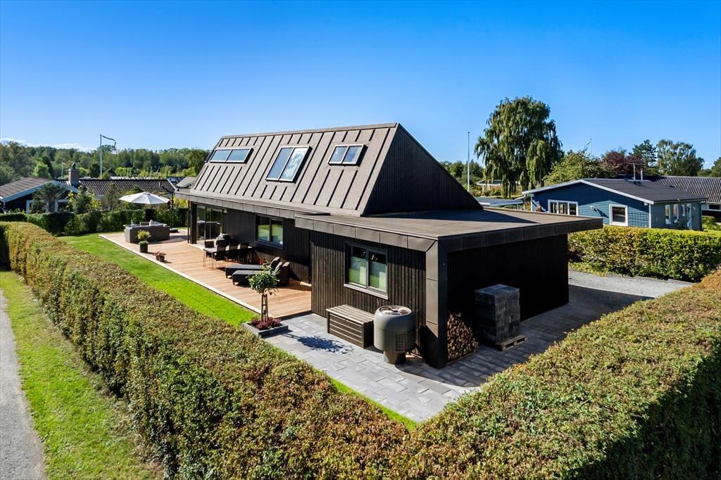 Dein Ferienhaus liegt im beschaulichen, wunderbar grünen Ferienhausgebiet Pøt Strandby. Lediglich 300 Meter trennen dich vom Strand, der zum Baden, zum Entspannen und zu Spaziergängen einlädt. Rund acht Kilometer trennen Pøt Strandby vom stimmungsvollen Hafenort Juelsminde, der nach rund 10 Minuten Fahrzeit erreicht ist. Juelsminde ist für den maritimen Hafenbereich, die kinderfreundlichen Strände und den reizenden Ortskern mit mehreren interessanten Geschäften, guten Einkaufsmöglichkeiten und Lokalitäten bekannt. Die Umgebung ist angenehm ruhig. Dadurch genießt du beste Erholungs- und Entspannungsmöglichkeiten und kannst zugleich mit deiner Familie nach Lust und Laune zu Ausflügen und Unternehmungen aufbrechen. Mit deinen Kindern musst du unbedingt den tollen Naturspielplatz unweit des Hafens und des Odelsbjergets besuchen. Der Spielplatz begeistert mit einem 8 Meter hohen Spielturm, mit einer Vielzahl an Spielgeräten, mit Sanitäreinrichtungen, mit Multifunktionsplätzen und zwei ganz neuen Paddletennis-Anlangen. Dank der Fülle an Aktivitätsangeboten wirst du mit deinen Kindern hier garantiert mehr als eine vergnügte, aktive Stunde verleben. Nach rund 20 Minuten erreicht ihr per Pkw die Stadt Horsens, in der sich unter anderem das aufregende Gefängnismuseum Fængslet und das Badeland AquaForum auf euren Besuch freuen. In Pøt Strandby führen euch viele schöne Wege und Pfade durch die hübsche Natur. Unternehmt zusammen beispielsweise einen schönen Waldspaziergang bis an den tollen Nørgaard Strand. Ebenfalls sehr empfehlenswert ist eine Wanderung auf dem Küstenpfad - entweder in Richtung Snaptun oder in Richtung Juelsminde.