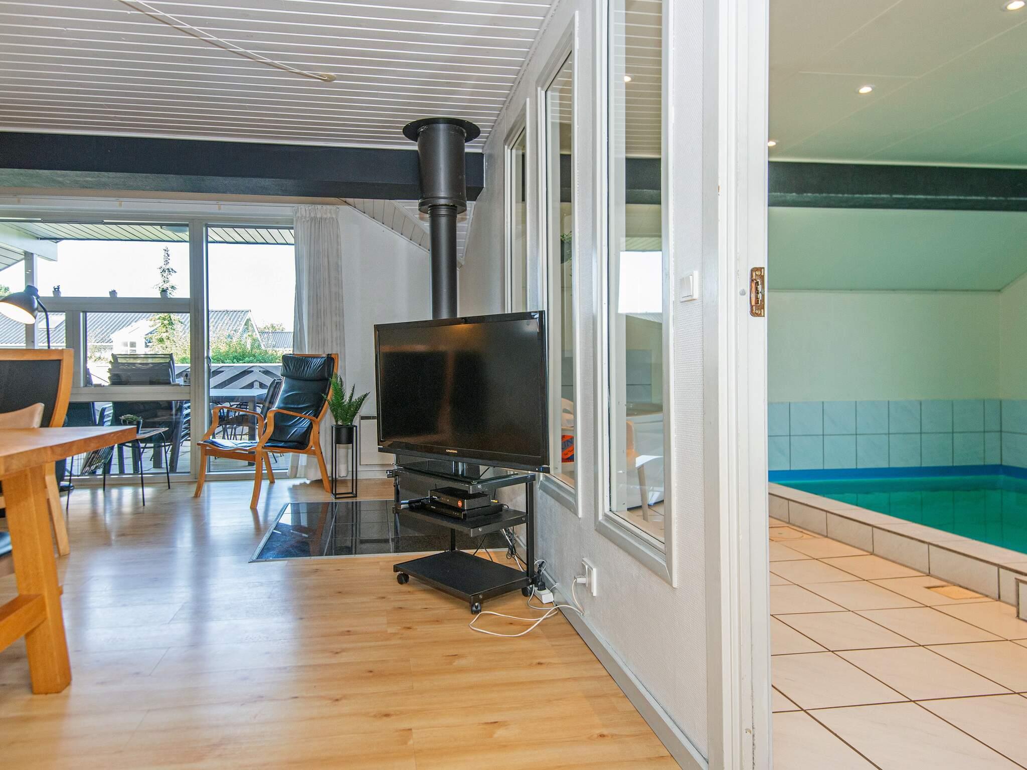 Im Haus stehen vier Schlafzimmer mit guten Schlafplätzen zur Auswahl. Außerdem gibt es eine voll ausgestattete Küche, die in offener Verbindung zum Wohnzimmer nebenan mit Kamin liegt, in dem es ein Fenster zum Poolraum gibt, damit man den Badespaß dort im Auge behalten kann.
