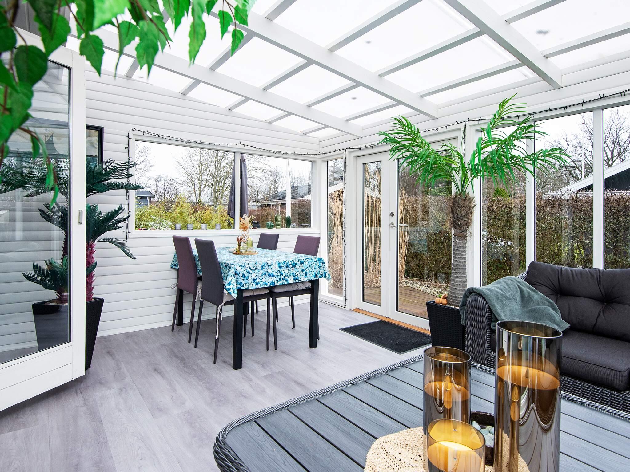 Vom Wohnzimmer aus haben Sie direkten Zugang zu einem schönen Wintergarten, in dem Sie das ganze Jahr über und bei jedem Wetter die Natur genießen können. Es gibt drei schöne Terrassen mit Ost-, Süd- und Westausrichtung. Ein Teil der Westterrasse ist überdacht und mit einem Gasgrill ausgestattet, sodass Sie geschützt vor Sonne und leichtem Sommerregen essen können.