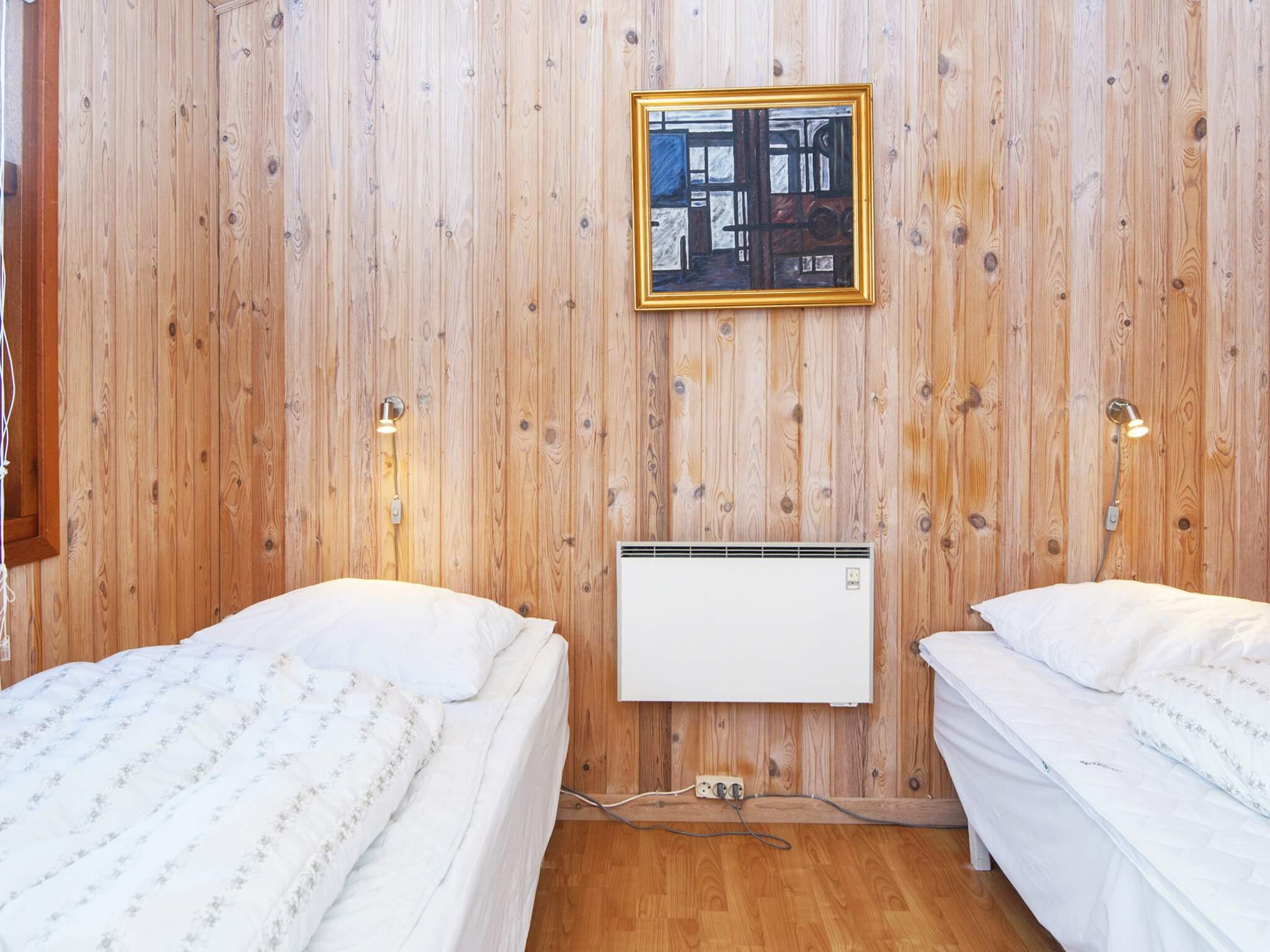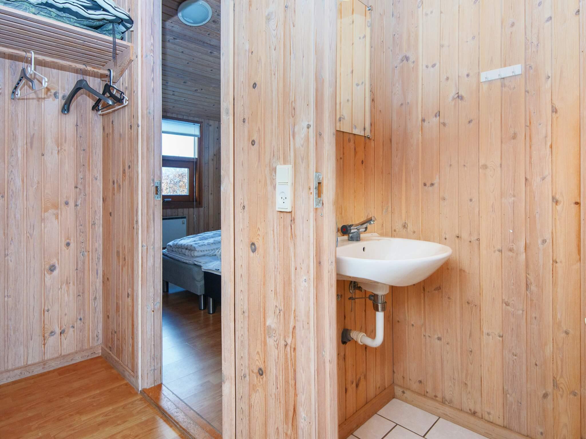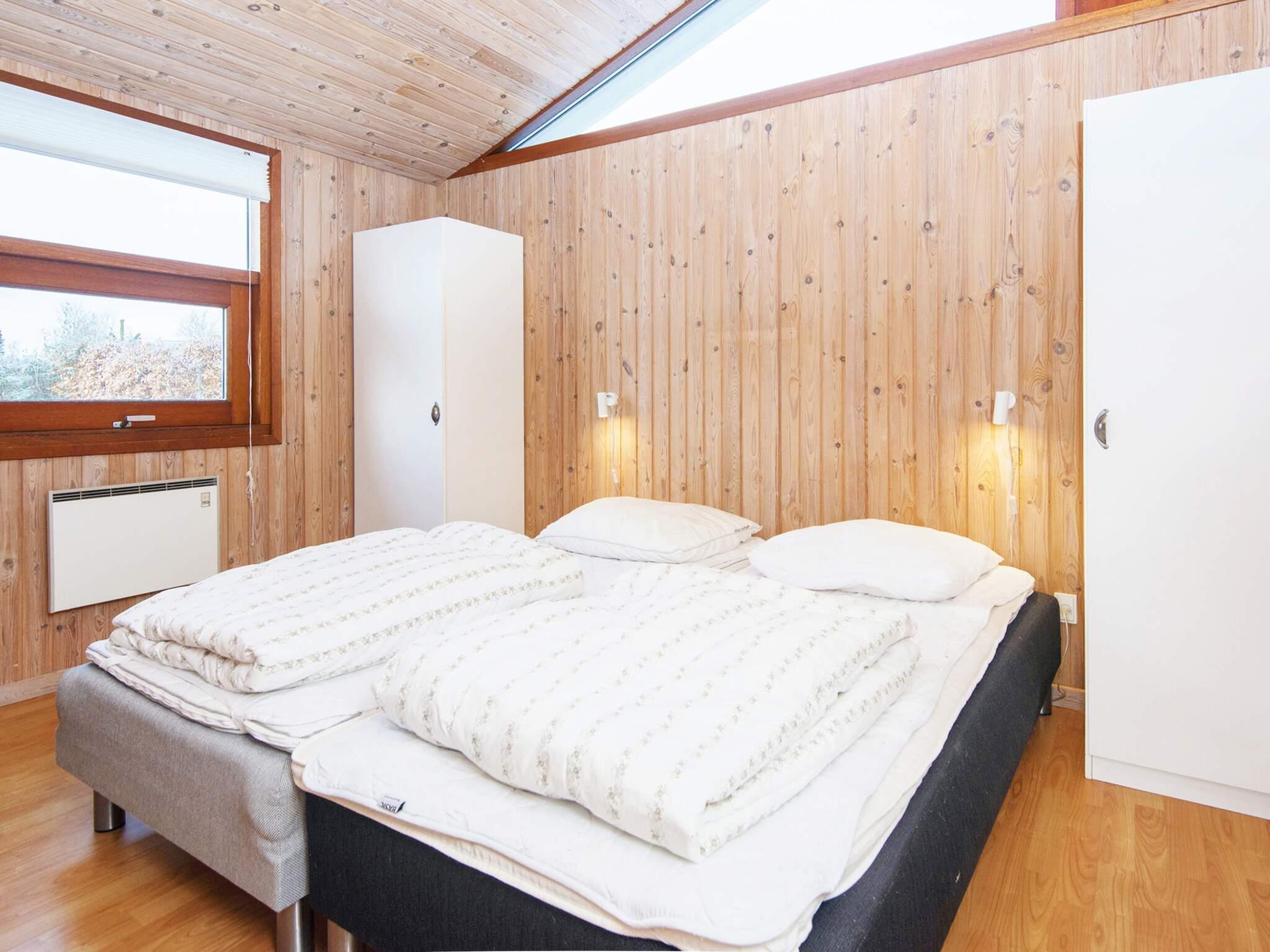 Ferienhaus nahe Wald und Strand. Es gibt hohe Decken und ein Bad mit Sauna und Whirlpool. Im Küchen-Wohnbereich kann sich die ganze Familie zu den Innenaktivitäten versammeln. Der Wohnraum liegt etwas tiefer und hat einen Holzofen für gemütliche Wärme. Drei Schlafzimmer und ein Alkoven bieten Schlafplatz. Es gibt eine große überdachte und eine offene Terrasse sowie eine große Rasenfläche, die zu Spiel und Spaß einlädt. Ganz in der Nähe des Hauses liegt ein Spielplatz. Für den Grill ist kein Gas bzw. keine Grillkohle vorhanden.