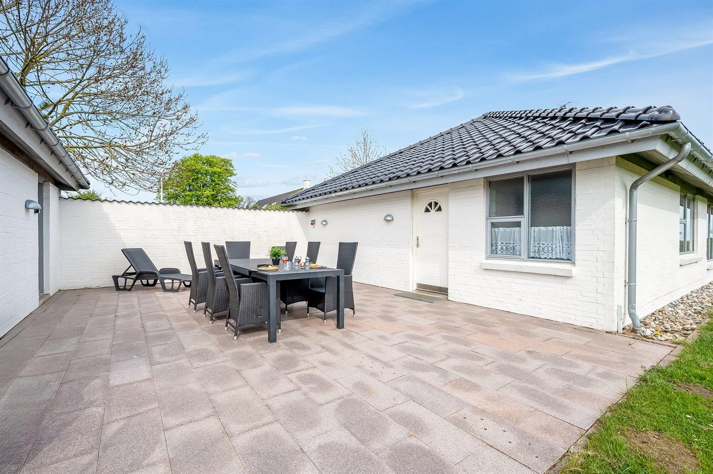 Das Ferienhaus liegt auf einem guten Grundstück mit einem übersichtlichen Garten. Es gibt eine nette, teilweise überdachte Terrasse – hier findest du oft einen vor dem Wind geschützten Platz,und du kannst die Sonne genießen und bei einem Glas Wein oder einer Tasse Kaffee, inmitten der friedlichen und naturnahen Umgebung, entspannen.