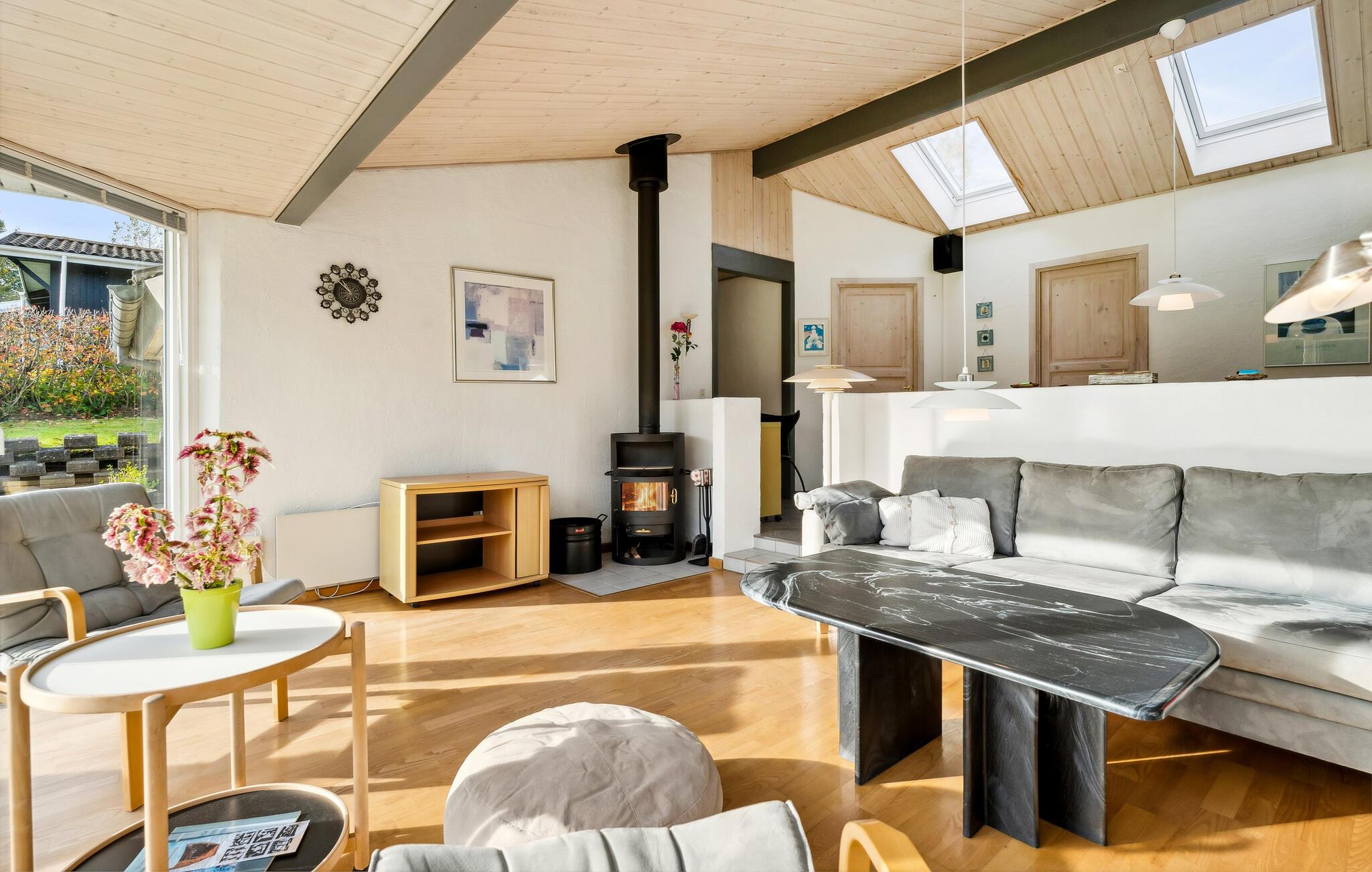 Erleben Sie entspannte Urlaubstage in diesem lichtdurchfluteten Ferienhaus mit einer angenehmen Atmosphäre.