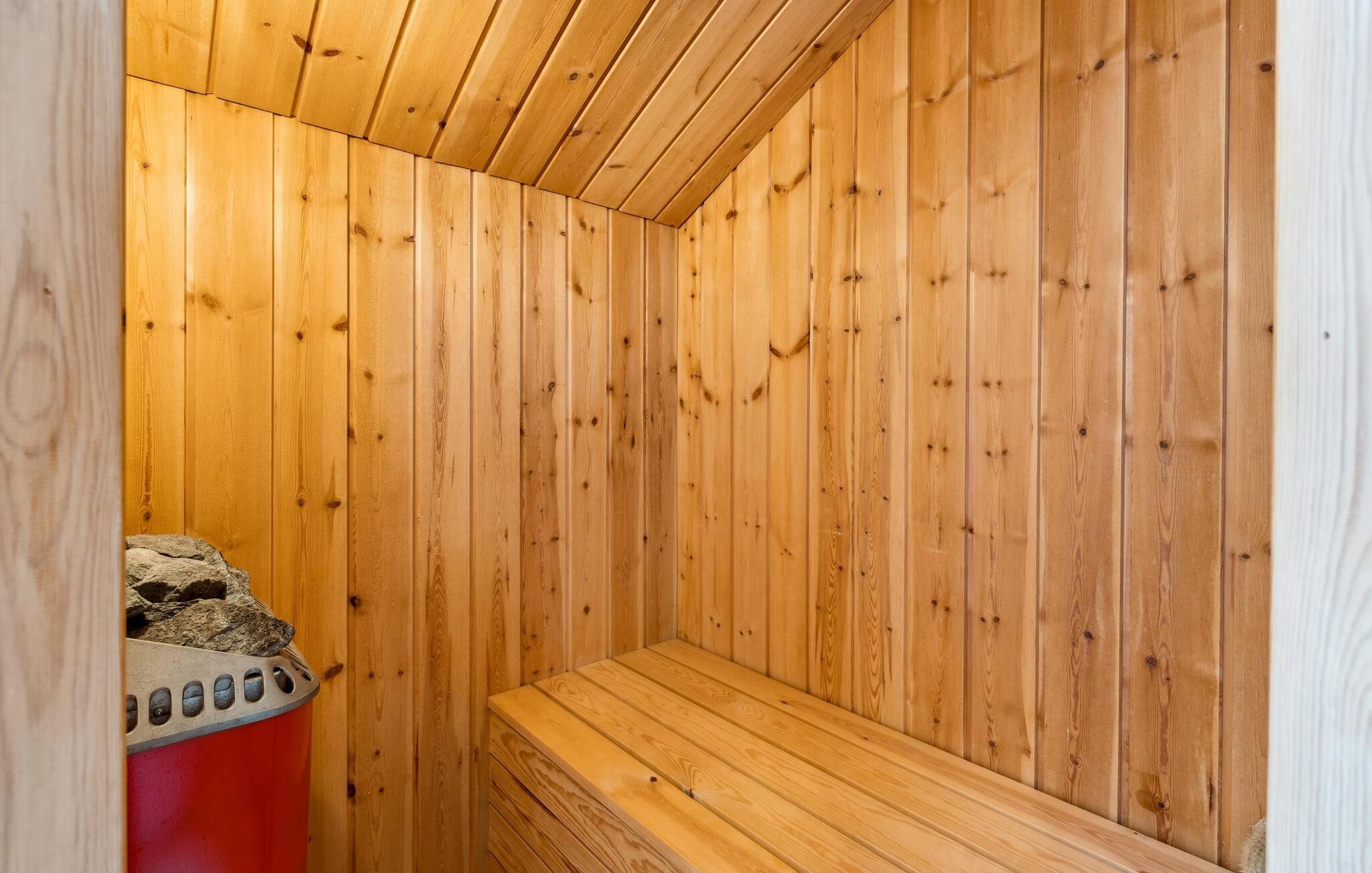 Genießen Sie entspannte Tage in diesem hellen Ferienhaus mit Sauna, Whirlpool und großem Garten nahe dem Strand von Pøt Strandby.