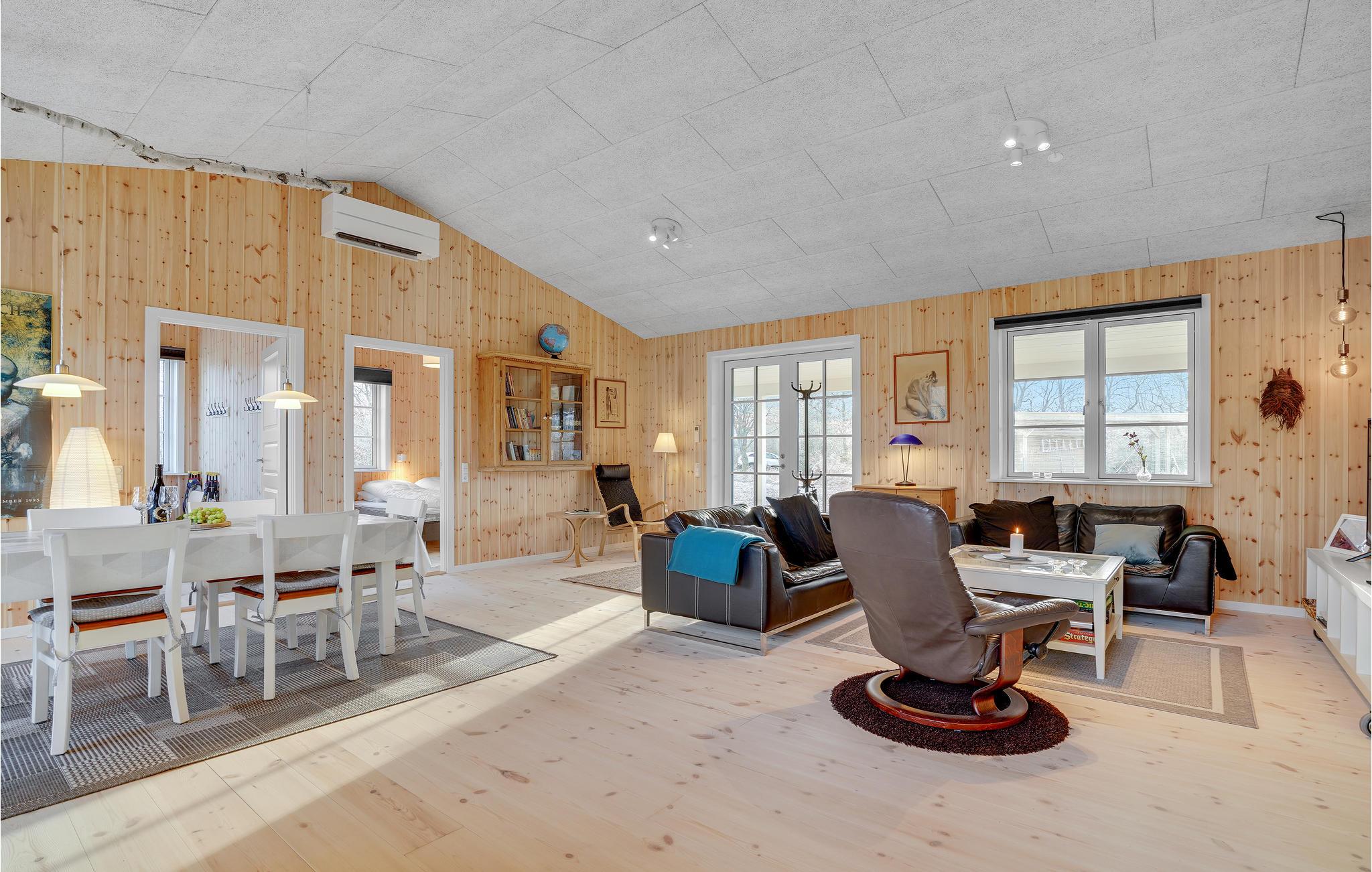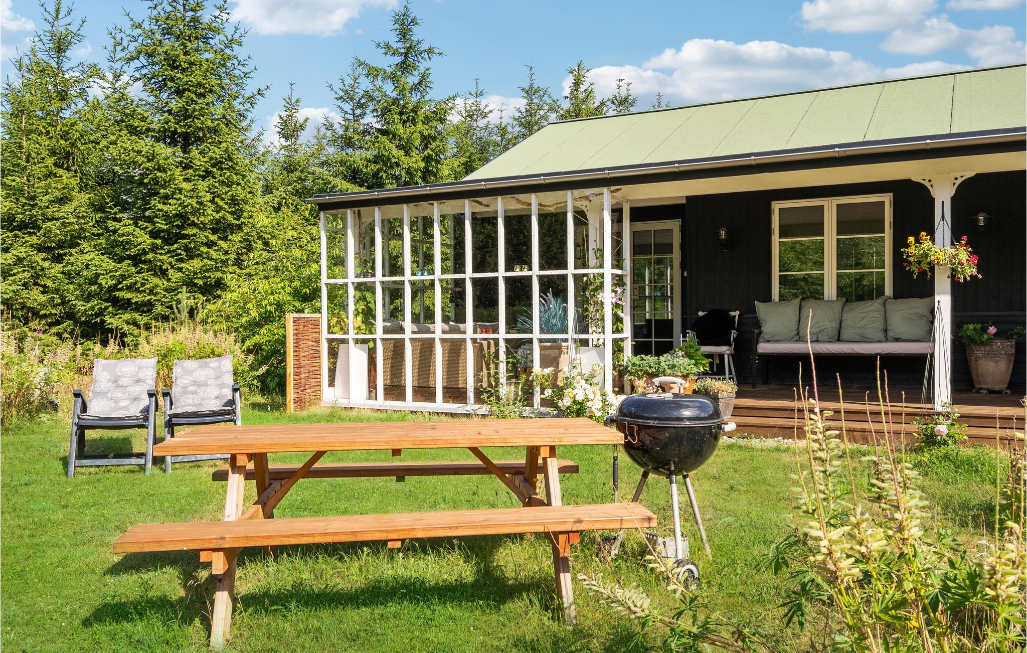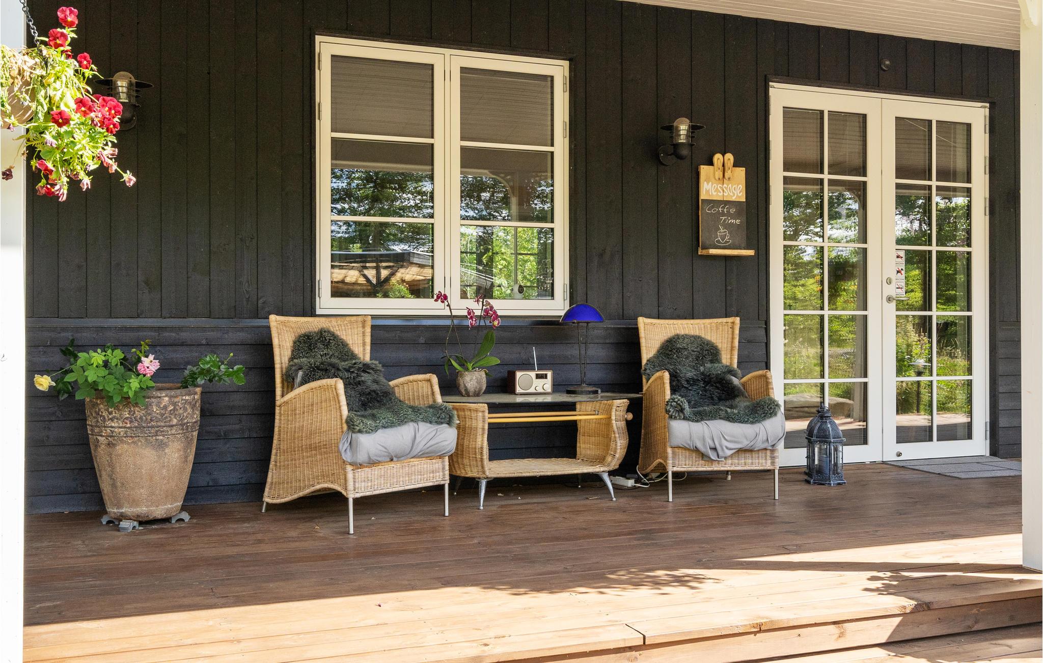 Dieses mit viel Liebe eingerichtete und dekorierte Ferienhaus heißt Sie auf einem großen Naturgrundstück willkommen. Im Inneren des Hauses erwartet Sie eine wirklich gemütliche Atmosphäre mit vielen schönen Details. Das Herz des Hauses ist der Wohn- und Essbereich mit offener Küche. Hier können Sie abends auf dem Sofa entspannen und einen Film schauen oder sich zu den Mahlzeiten des Tages am Esstisch treffen.