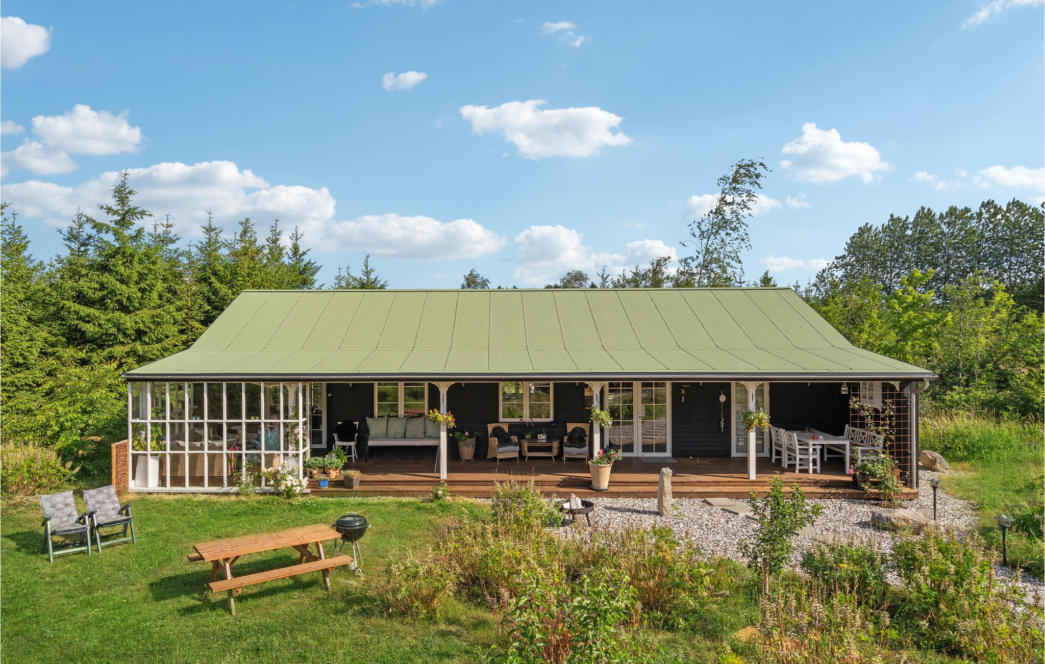 Idyllisches Ferienhaus mit großer überdachter Veranda auf 4000 m² Naturgrundstück in Vemb, Dänemark.