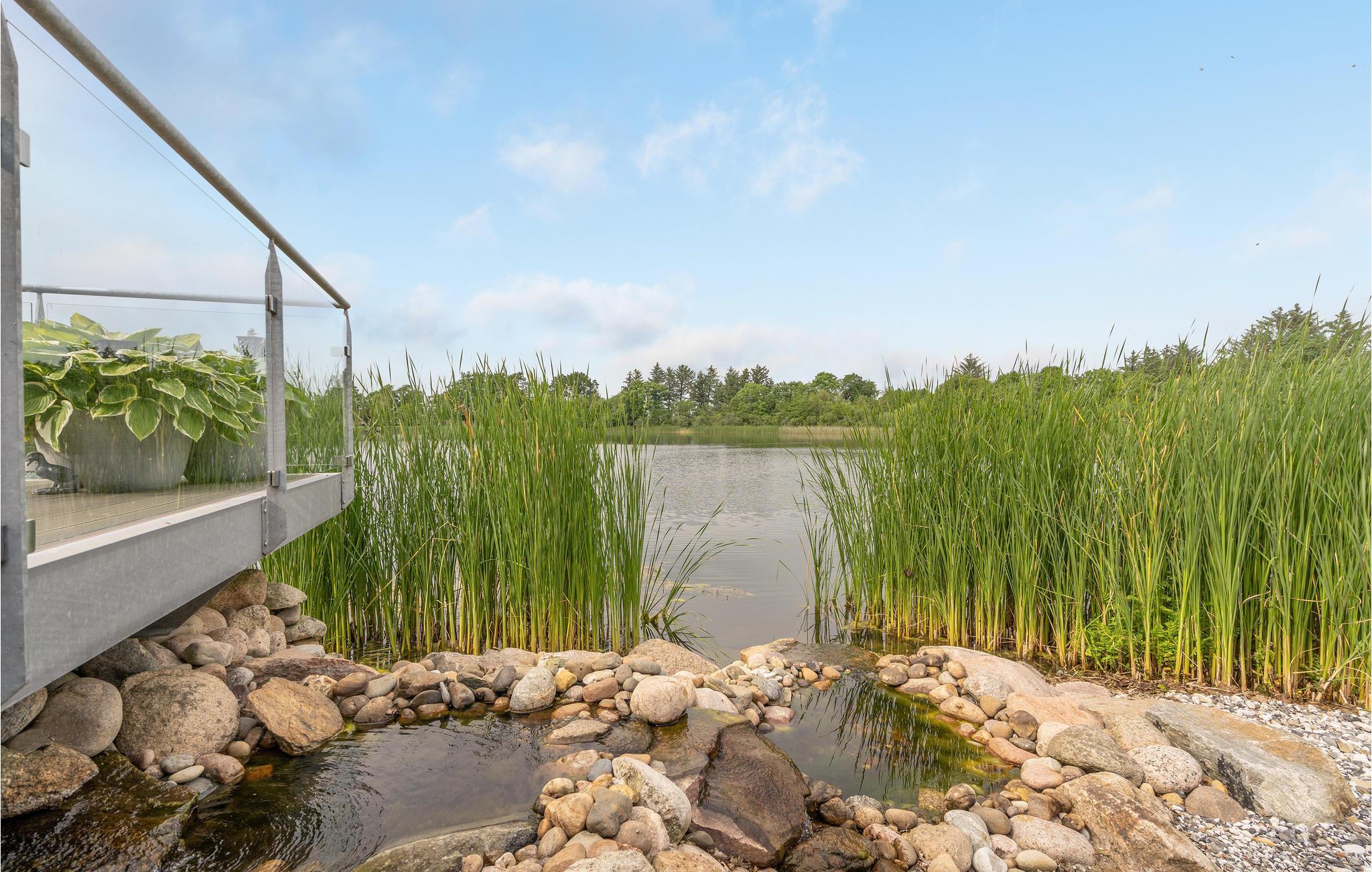 Modernes Ferienhaus mit Panorama-Seeblick und direktem Seezugang in Vemb, Dänemark.