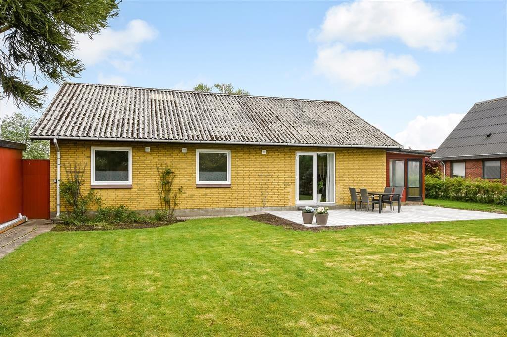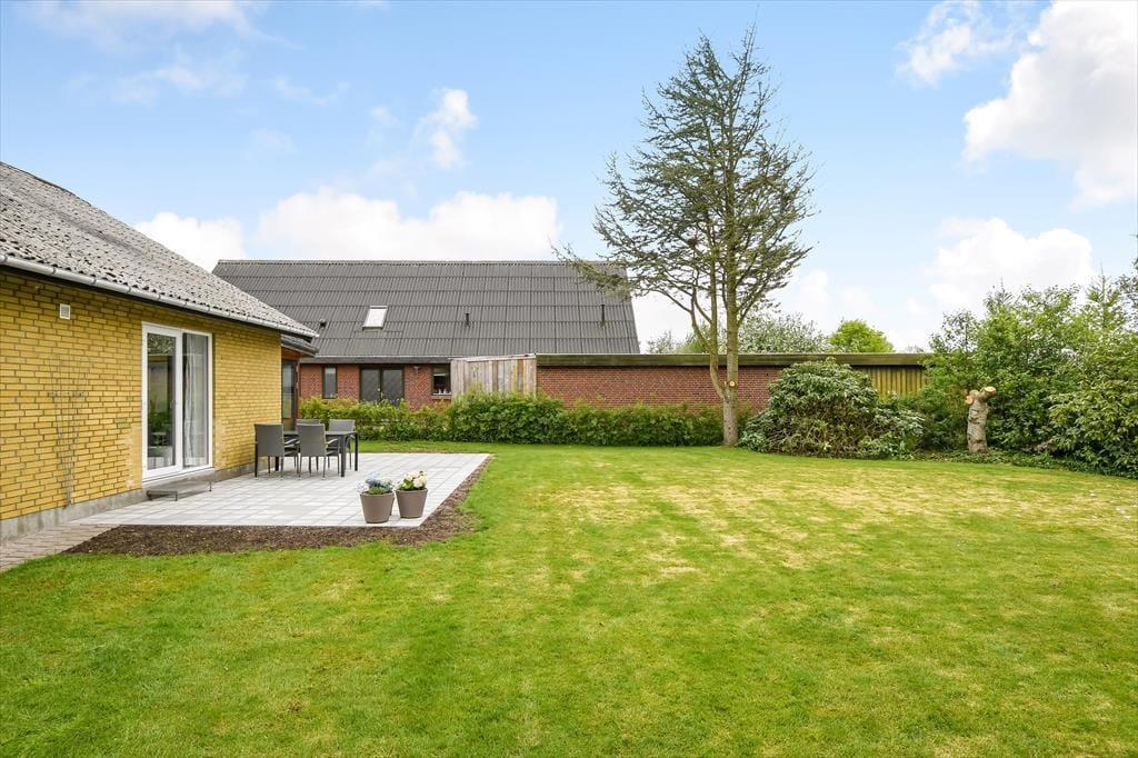 Sowohl vom Wohnzimmer als auch vom Wintergarten besteht eine Verbindung zum Hinterhof des Sommerhauses, der als wunderschöne Oase fungiert, wenn die Sonne über Rækker Mølle scheint. Die Rasenfläche lädt zum Spielen und Ballspielen ein, so können Sie die Familie bei Wikingerspielen herausfordern oder sich das Frisbee aus Ihrem Urlaubsgepäck holen – wenn Sie sich nicht lieber ins Grüne mit freiem Blick auf den blauen Himmel werfen möchten. Sowohl Gartenmöbel als auch ein Grill stehen zur Verfügung und im Jahr 2024 wurde eine Terrasse gebaut, damit Sie und Ihre Lieben bequem sitzen und den Urlaub in Ruhe genießen können.