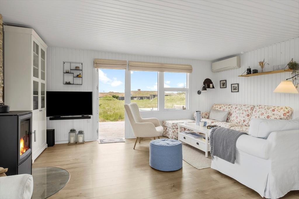 Ein überdurchschnittlich gemütliches Ferienhaus, das nach einer umfangreichen Renovierung, die perfekte Urlaubsatmosphäre ausstrahlt. Hier erwarten Sie helle Fußböden, weiße Holzvertäfelung, Fenster mit Blick in die Dünenlandschaft und ein toller Kamin für eine gemütliche Atmosphäre. Das Haus umfasst einen offenen Küchen-Wohnbereich, drei Schlafzimmer (zwei mit Doppelbett und eins mit einem Schlafsofa) sowie ein Badezimmer mit Toilette und Dusche die im 2020 renoviert sind. Die Möbel sind in hellen und gedämpften Farben gehalten und Textilien, Kunstgegenstände und Dekoration sind aufeinander abgestimmt. Das Haus ist ausgestattet mit Geschirrspülmaschine, Wärmepumpe, Kabel-TV und WLAN - also denken Sie beim Packen an Ihren Laptop oder Ihr Tablet, um sich während Ihres Urlaubs über Aktivitäten und Veranstaltungen in der Umgebung zu informieren. Ein Qualitätshaus mit Garantie für einen unvergesslichen Urlaub in Nordjütland.