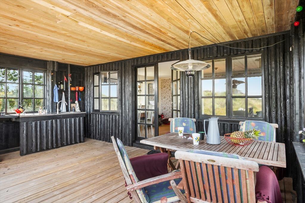 Mit seiner traditionellen Bauweise, der reizenden Einrichtung und der Lage inmitten prachtvoller Natur ist dieses Ferienhaus eine wahre Oase für diejenigen, die sich in idyllischer Umgebung erholen und entspannen möchten. Durch die Fenster und auf der überdachten Terrasse blicken Sie auf die unter Schutz stehende Dünenheide. Der Rødhus Strand ist gut zu Fuß und per Fahrrad erreichbar.