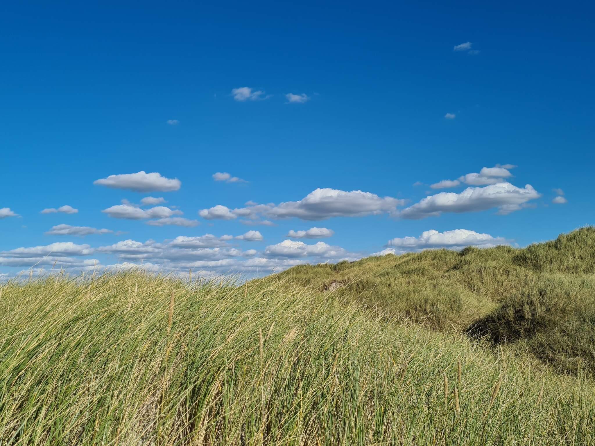 Im Außenbereich erwarten Sie eine kleine überdachte Terrasse und die 100 m² große, nach Süden ausgerichtete Sonnenterrasse – ideal für sonnige Tage. Das gemeinschaftlich genutzte Dünengrundstück bietet außerdem einen Spielplatz mit Trampolinen, einem Ballspielplatz, Schaukeln, einem Sandkasten und einer Rutsche – ideal für Familien mit Kindern. Das Grundstück grenzt direkt an den Strand von Rødhus.