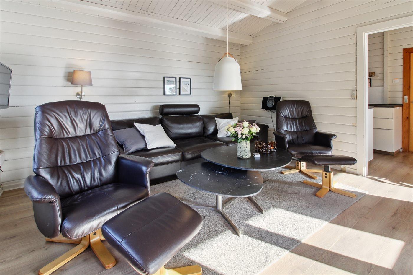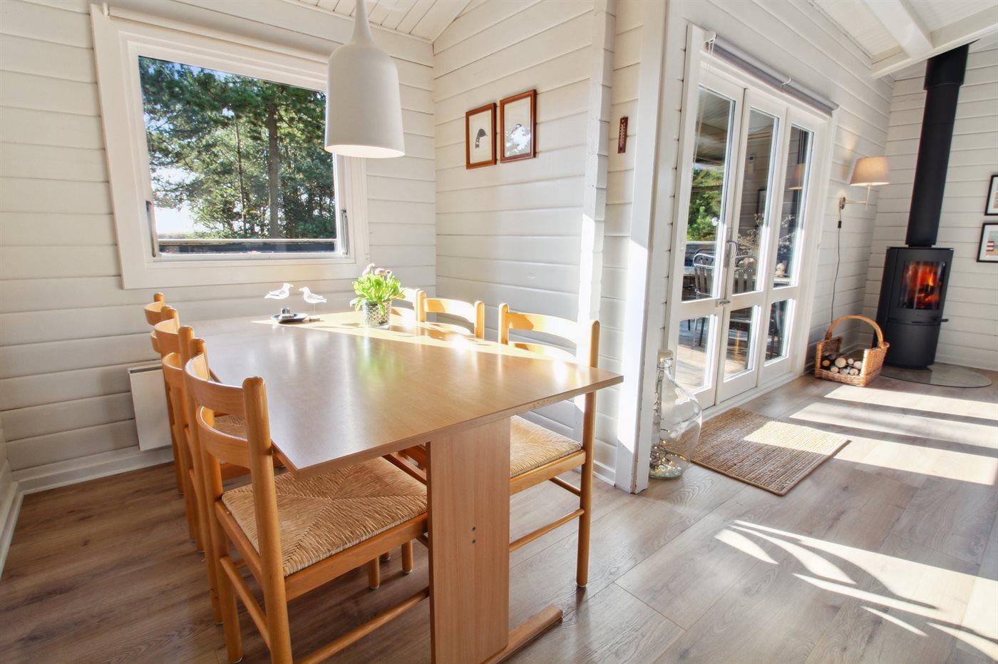 Dieses schöne Ferienhaus aus Holz, 1973 gebaut unf 2004 modernisiert, liegt auf einem großen, ungestörten Naturgrundstück mit Bäumen am Ende einer Sackgasse. Schöne, große, teils überdachte Terrasse mit Gartenmöbeln. Badezimmer mit Fußbodenheizung und Dusche. Sauna. Die helle, moderne Küche ist mit u. a. Geschirrspüler, Mikrowelle und Tiefkühlgerät ausgestattet. Schönes Wohnzimmer mit Ledermöbeln, Kaminofen, TV mit Satellitenanschluss, DVD-Spieler sowie Stereoanlage mit CD-Spieler. Ferner kostenlose, kabellose Internetverbindung vorhanden (Computer ist mitzubringen). Die Schlafplätze verteilen sich auf 2 Schlafzimmer; 1 mit Doppelbett und 1 mit 2 Einzelbetten. Für die kleinen Feriengäste stehen Kinderbett, Kinderhochstuhl, Sandkasten und Schaukel zur Verfügung. Es sind Waschmaschine sowie Wäschetrockner vorhanden und es ist eine Energiegerechte Wärmepumpe installiert. Strandkorb auf dem Grundstück.