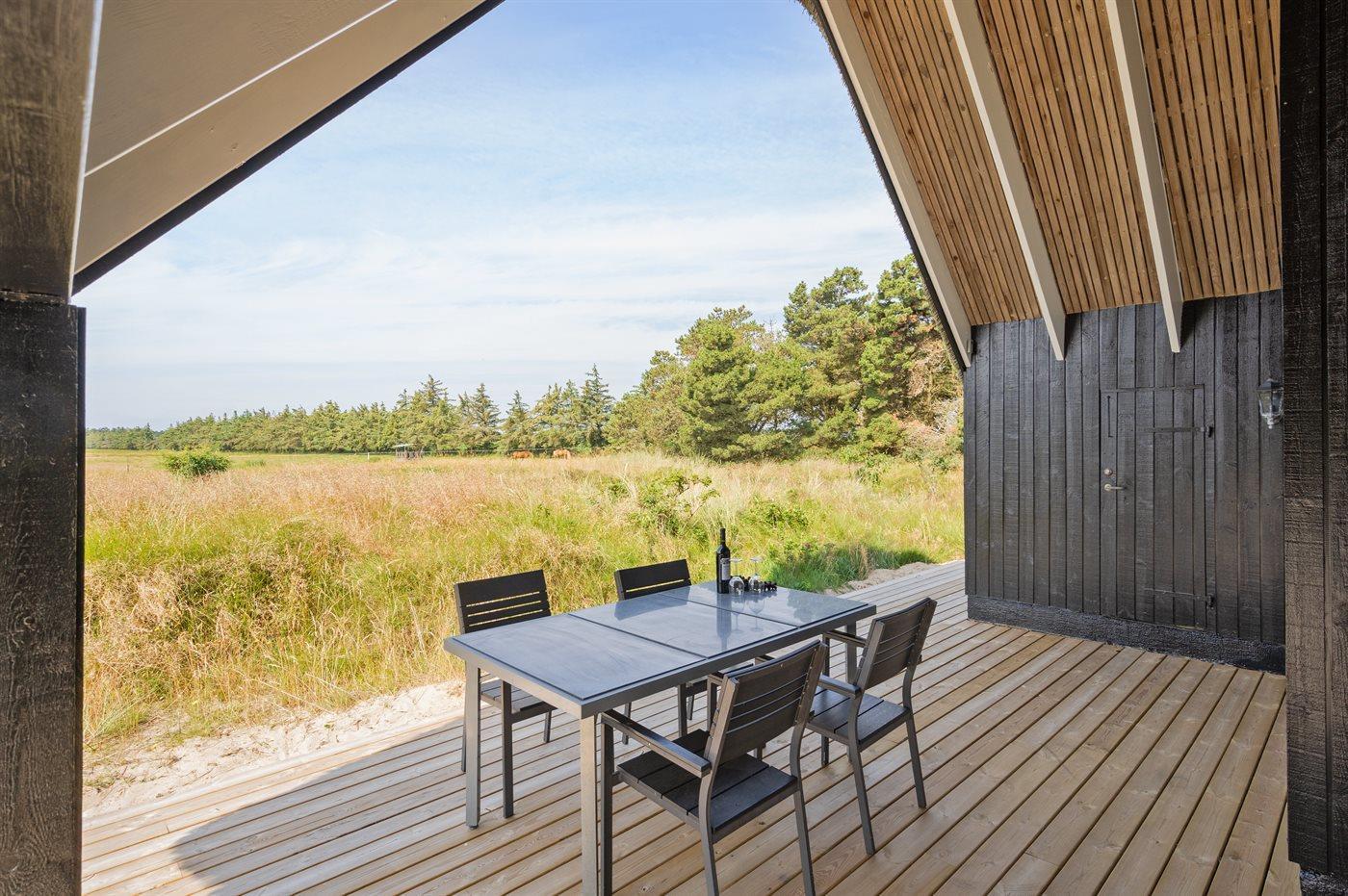 Das Haus liegt auf einem 2608 m² großen Naturgrundstück. Die Entfernung zum Meer beträgt 1000 m, die nächste Einkaufsmöglichkeit liegt 2800 m entfernt und ein Golfplatz liegt in einem Abstand von 350 m. Zum Ferienhaus gehört eine 80 m2 offene Terrasse mit besonders guten Gartenmöbeln, 4 Sonnenliegen und Sandkasten. Ferner ist eine 10 m2 überdachte Terrasse vorhanden.