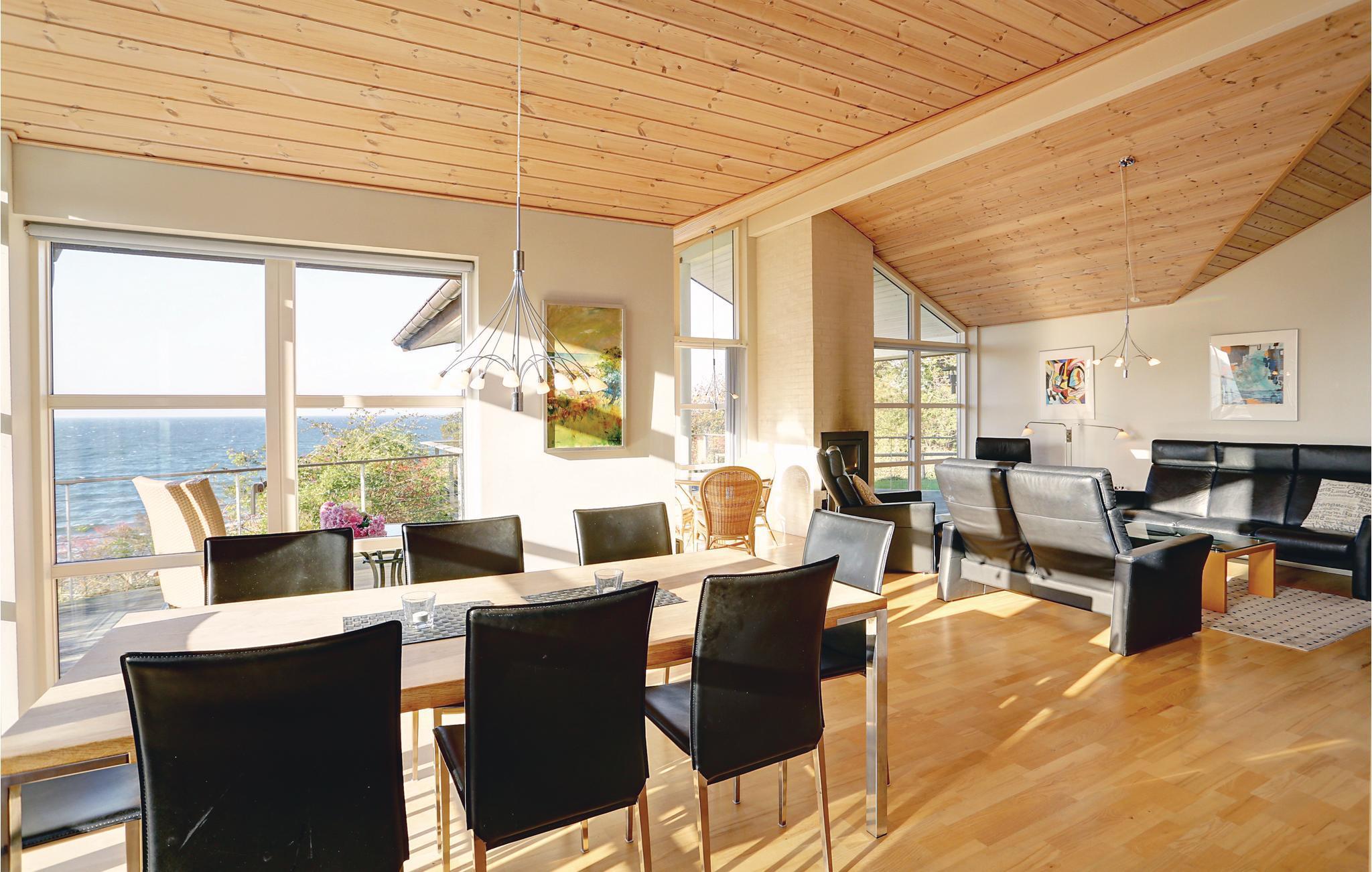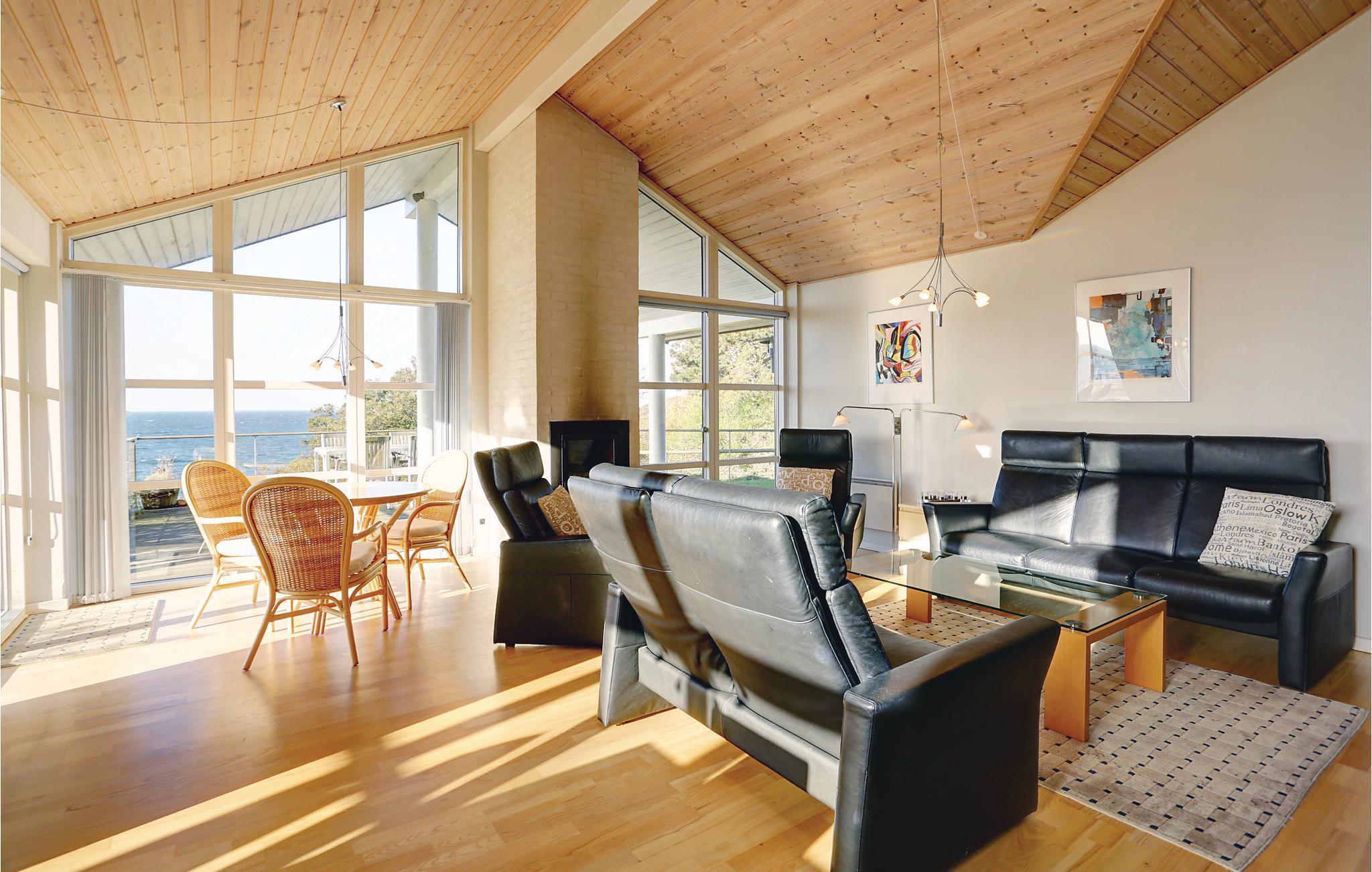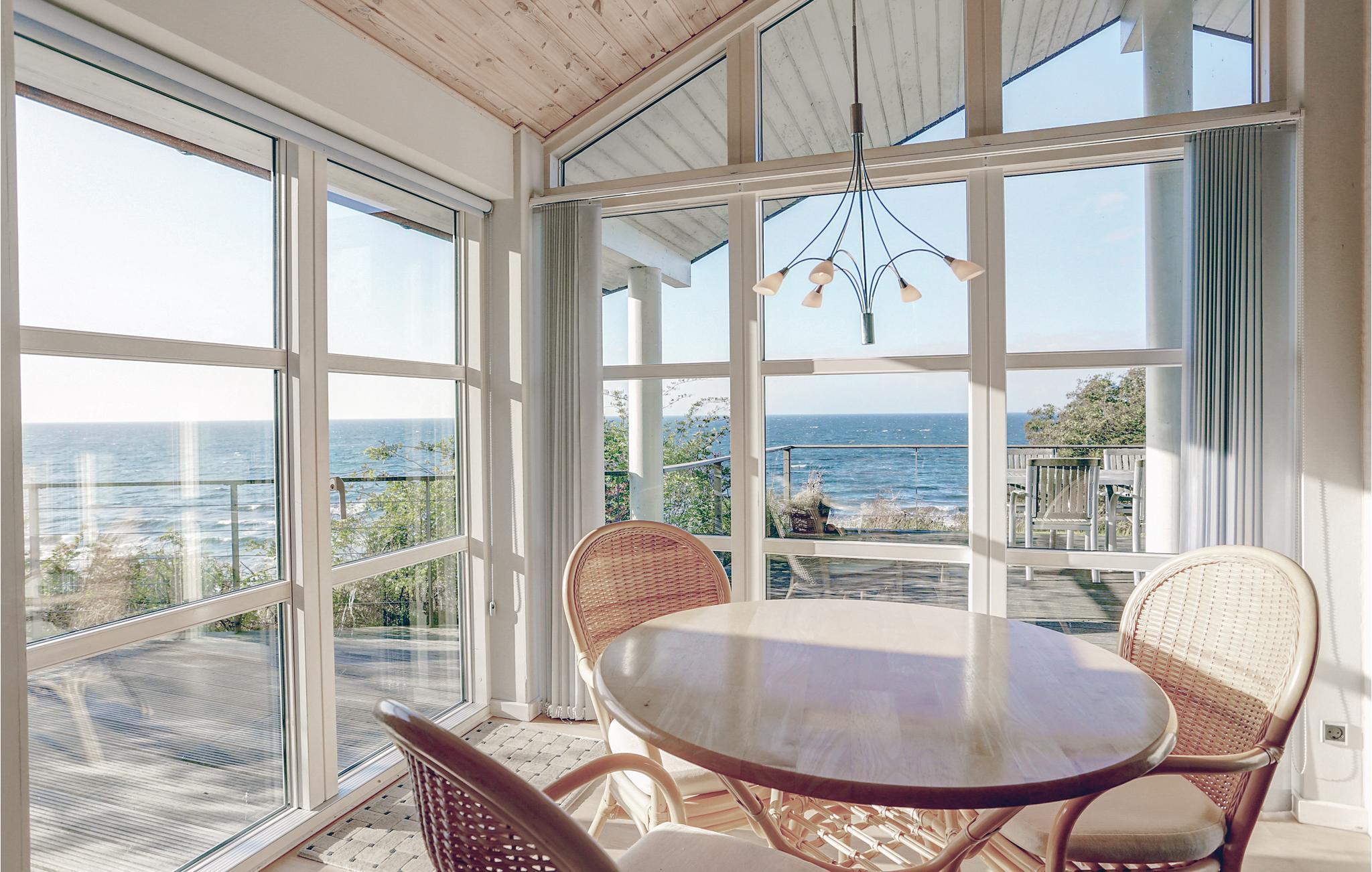 Ein von den schönsten Ferienhäusern auf Bornholm hat eine fantastische Lage und einen schönen Meerblick. Es wurde mit erstklassigen Materialien gebaut und ist hoch über dem Meer auf einem Naturgrundstück gelegen. Es ist hell und modern eingerichtet mit einer Fensterfront zum Meer, die für viel Licht und Panoramablick auf die Ostsee sorgt. Das große Haus verfügt außerdem über eine offene Küche mit allem Komfort, ein schönes Esszimmer und einen Wohnraum mit komfortablen Möbeln und Kaminofen. Vom Wohnraum gelangen Sie auf den Schlafboden, der als Spielecke für Kinder ideal ist.