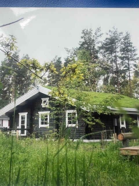 Entdecken Sie diese charmante bjælkehytte mit Grasdach, eingebettet in die Natur nahe Strand und Wald in Sorthat/Muleby.