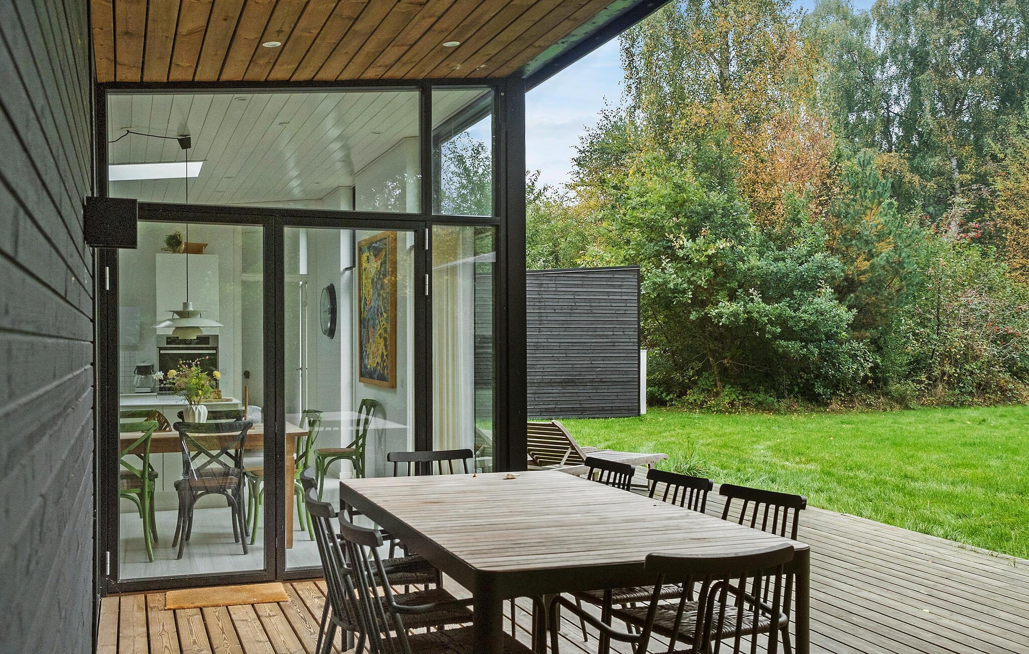 In diesem wundervollen Ferienhaus findet eine große Familie Platz. Das Haus macht einen modernen, geschmackvollen Eindruck und ist hell und offen gestaltet. Die geräumige Wohnküche ist offen und beinhaltet einen Essplatz und den Wohnbereich mit Kaminofen. Von hier aus haben Sie Zugang zur überdachten Terrasse. Im Nebengebäude, das Sie über die Terrasse erreichen, finden Sie zwei Schlafzimmer mit gemütlichen Schlafplätzen.