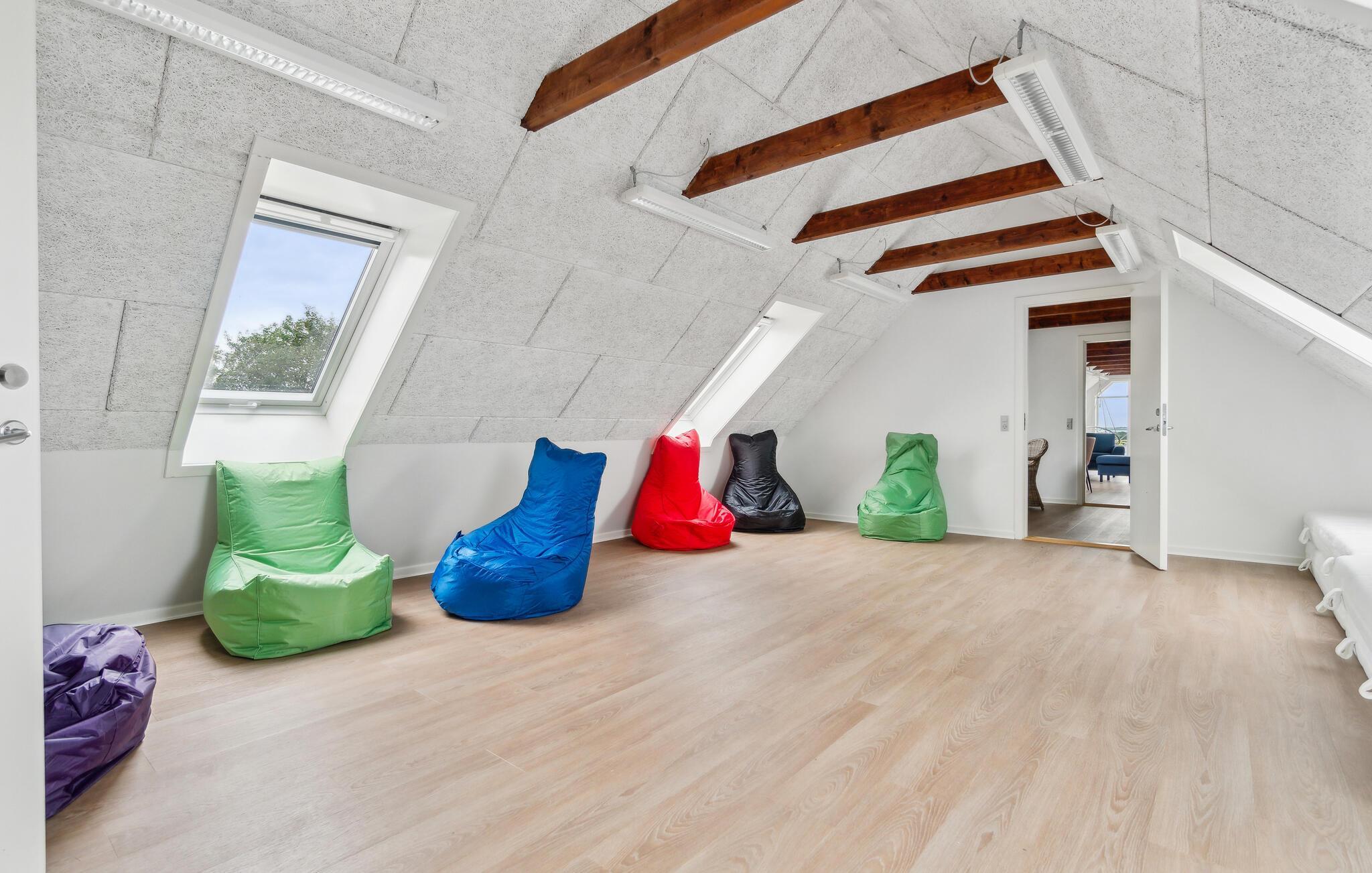 Herzlich Willkommen in diesem einzigartigen Ferienhaus in Rødding, einer ehemaligen Schule, die komplett renoviert wurde und nun modernen Komfort mit historischem Charme vereint. Dieses großzügige Haus bietet viel Platz für große Familien oder mehrere Familien, die gemeinsam Urlaub machen möchten. Die stilvoll eingerichteten Innenräume strahlen eine gemütliche Atmosphäre aus und laden zum Verweilen ein. Der große Aktivitätsraum und die eigene Turnhalle/Ballsporthalle, die kostenlos genutzt werden kann, bieten unzählige Möglichkeiten für Sport und Spaß. Genießen Sie auch das Schwimmbad mit Rutsche und Panoramablick auf den Limfjord.