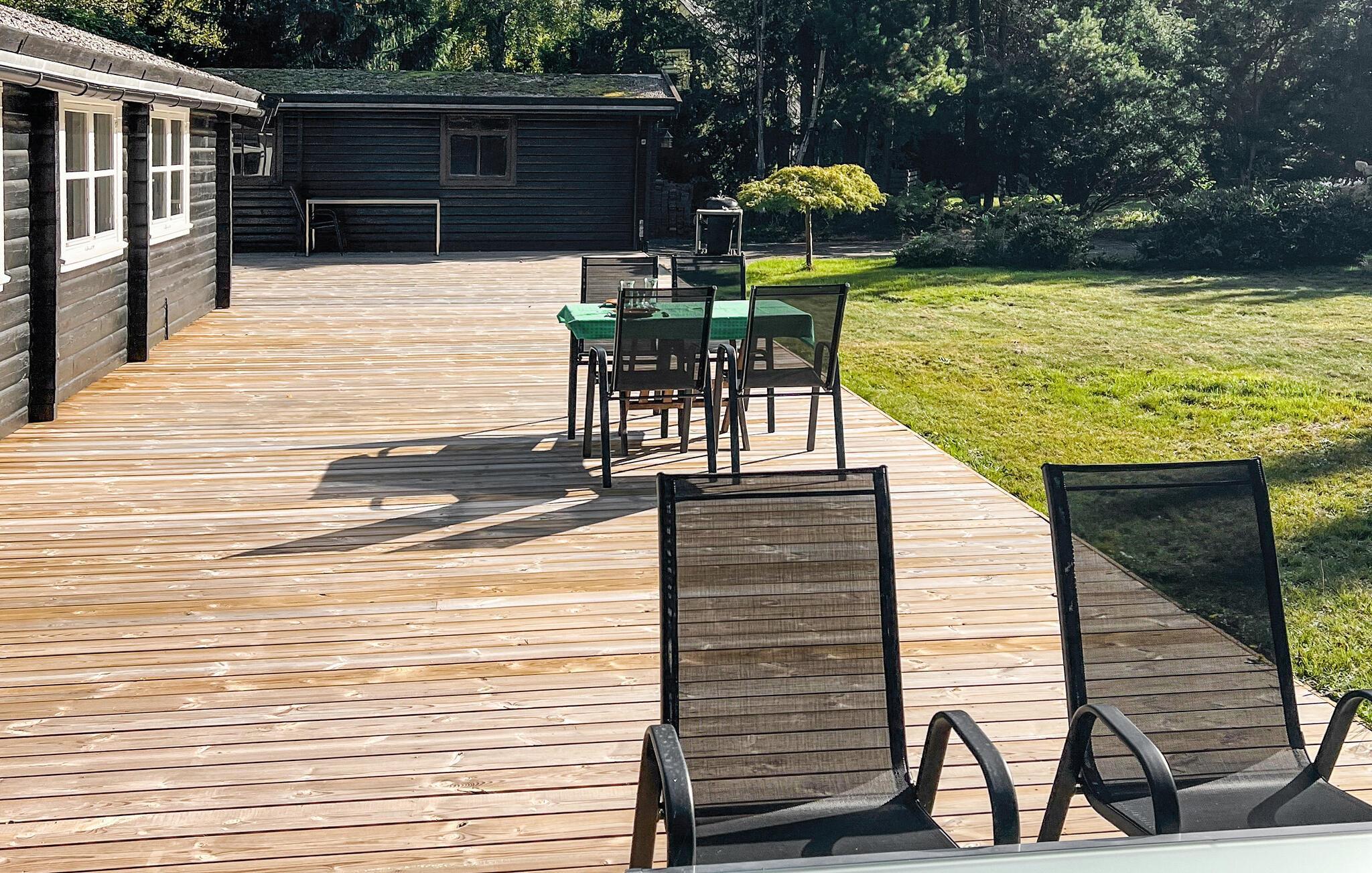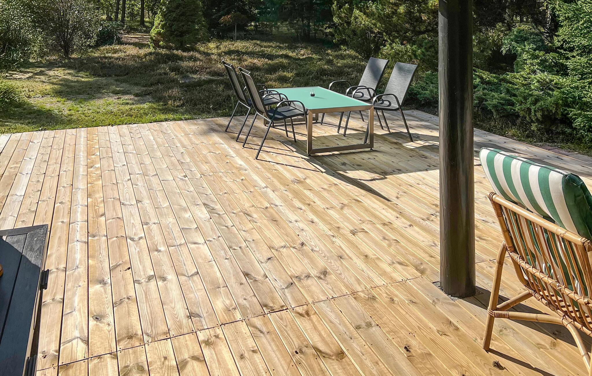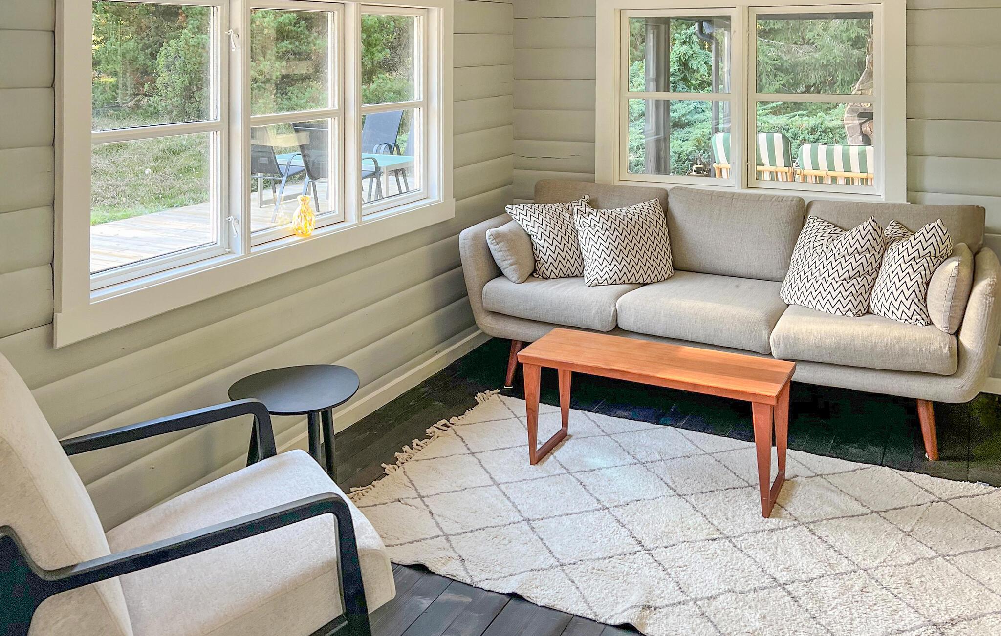Ihr Ferienhaus begrüßt Sie mit seiner traditionellen Einrichtung und gemütlich eingerichteten Räumen. Der Wohnbereich präsentiert sich freundlich und hell. Machen Sie es sich in der Sofaecke gemütlich – ideal zum Entspannen, Spielen oder Schmökern. Große Fenster lassen viel Licht in das Haus, so kommt das harmonische Holzdesign besonders gut zur Geltung. In der praktisch gestalteten Küche mit viel Arbeitsfläche können Sie gemeinsam kochen. Ihre Mahlzeiten genießen Sie am Esstisch mit Blick in den schönen Garten.