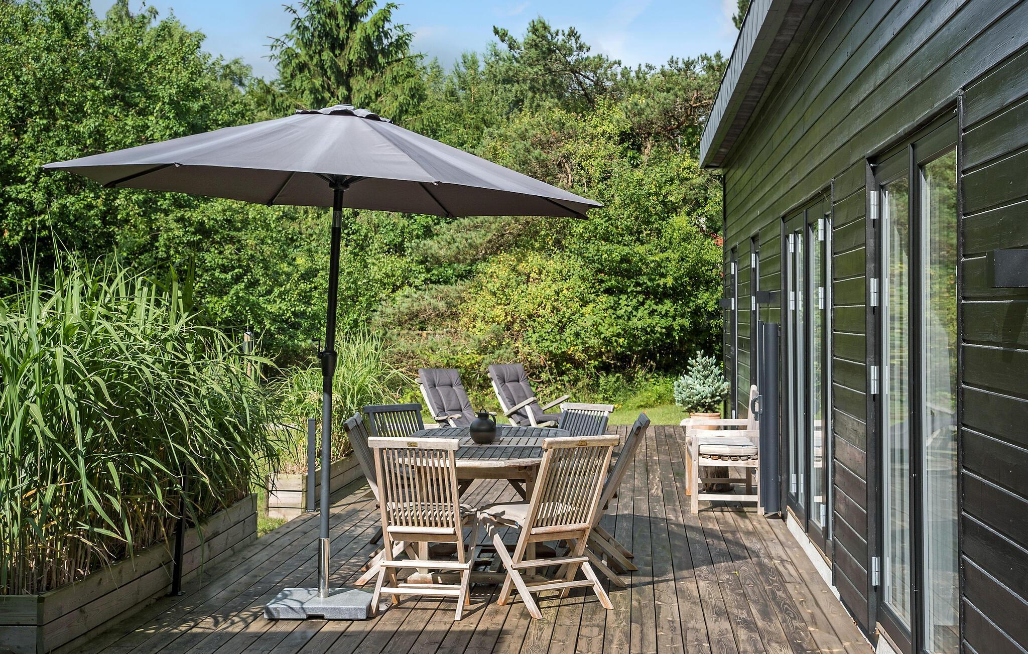 Dieses geräumige, ebenerdig erbaute Ferienhaus bietet Ihnen viel Platz, um mit Freunden oder einer befreundeten Familie gemütliche Tage in idyllischer Lage zu genießen. Veranstalten Sie fröhliche Kochabende in der einladenden Küche, zelebrieren Sie Ihre Mahlzeiten am stilvollen Esstisch und lauschen Sie dem Knistern des Kaminofens, wenn Sie es sich nach dem Saunagang auf dem gemütlichen Sofa bequem machen, um die warme Atmosphäre bei einem Film oder anregenden Gesprächen bei einem Glas Wein auf sich wirken zu lassen.