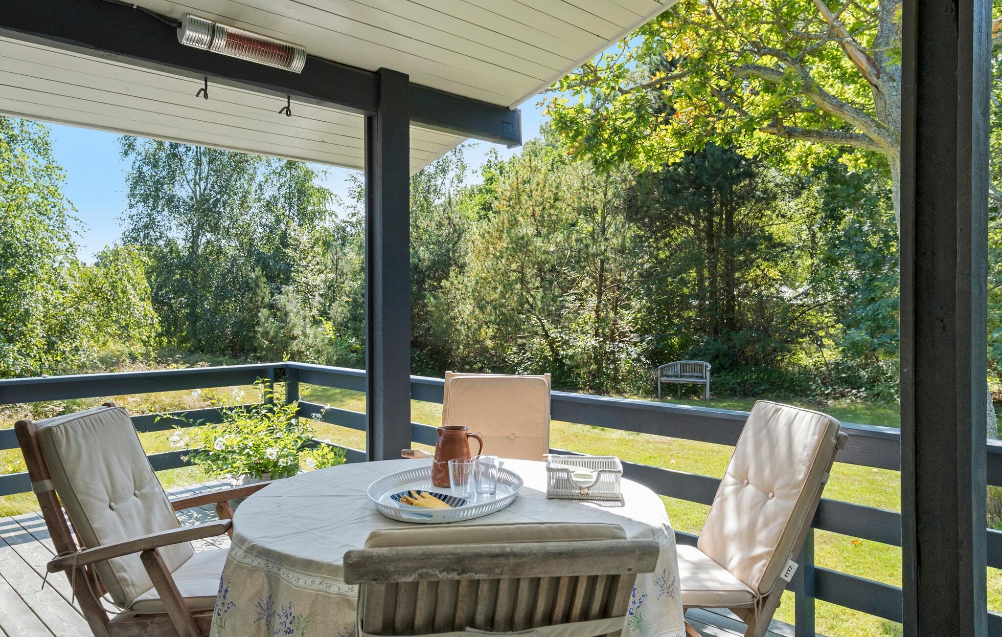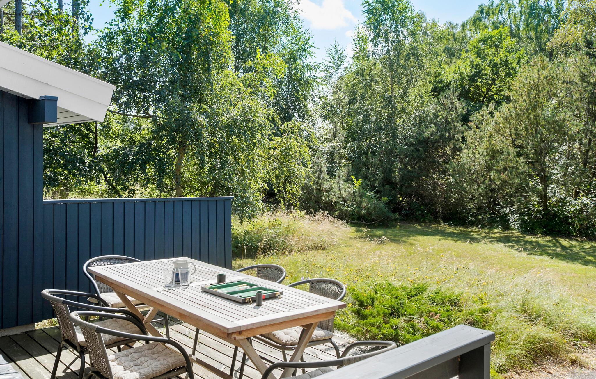Idyllisches Ferienhaus nahe Skansebugten Strand mit großem Garten und Kaminofen für entspannte Urlaubstage.