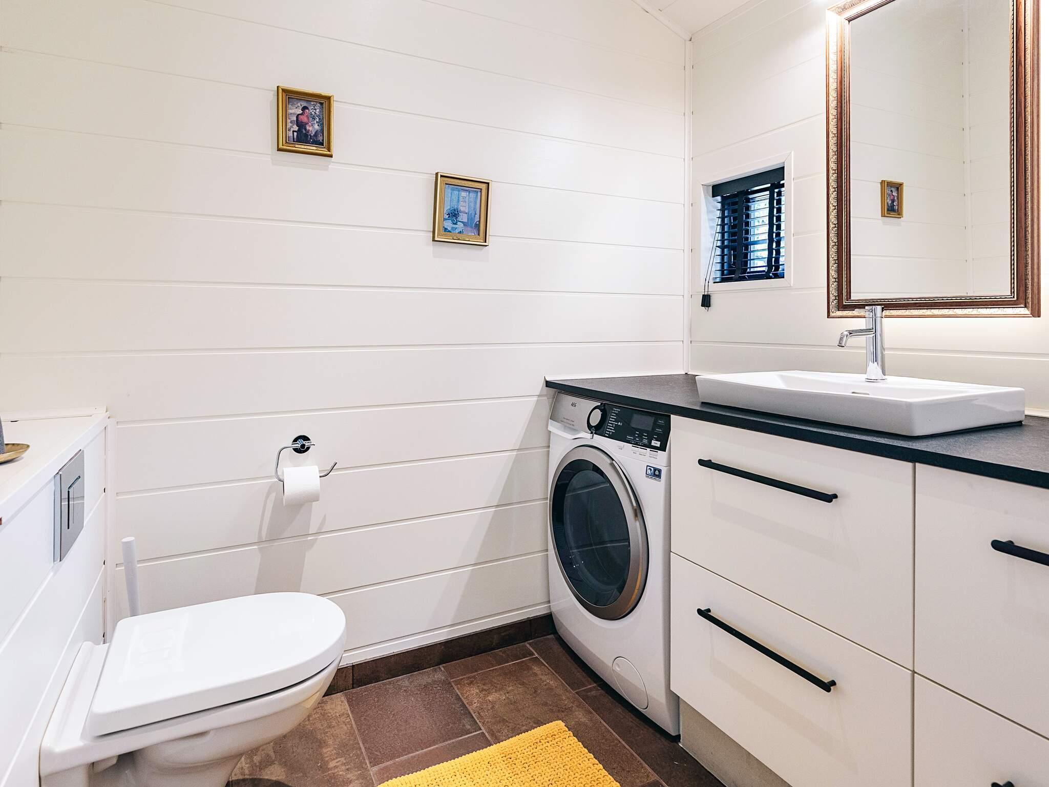 Bad: Waschm, Trockner, WC, Waschb., Dusche