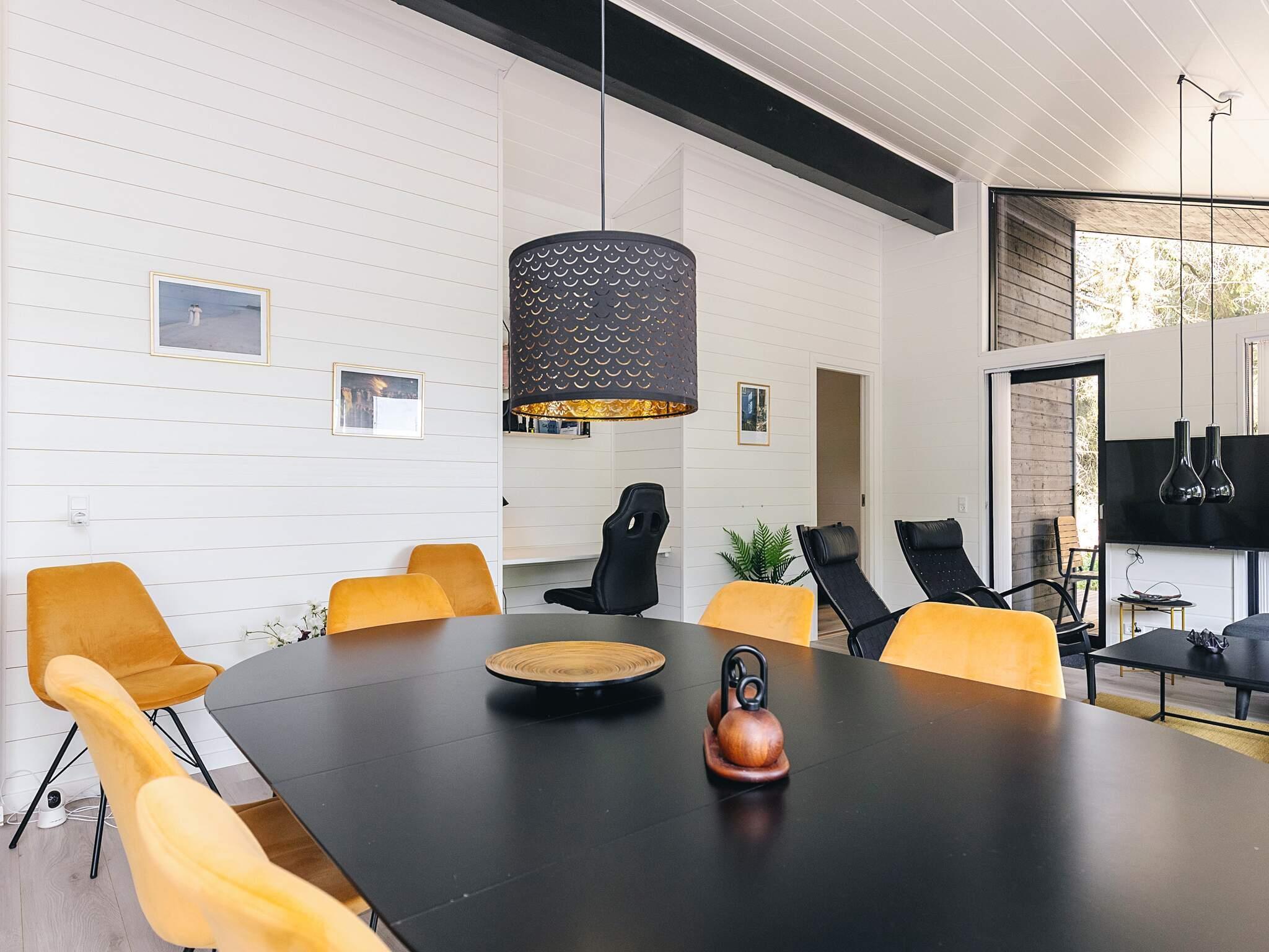 Küche, Esszimmer und Wohnzimmer sind zu einem langen Raum zusammengefasst. Von der gut ausgestatteten Küche aus haben Sie einen guten Überblick über die Aktivitäten der Familie. Dieser schöne Gemeinschaftsraum ist der ideale Ort, um Ihren Urlaub bei einem Brettspiel oder einem guten Buch zu genießen.