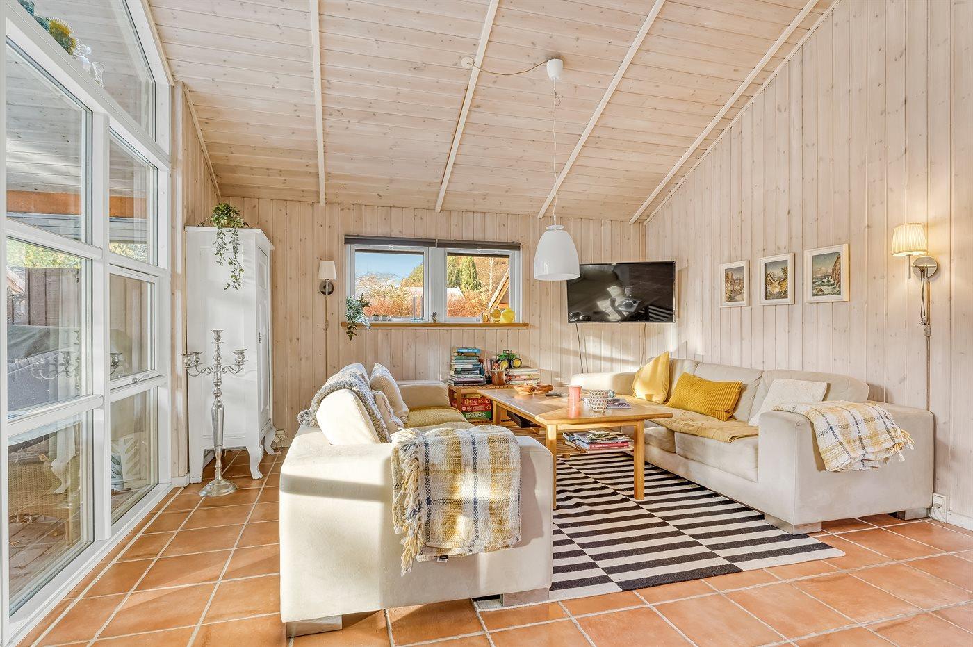 Das Ferienhaus liegt im schönen Feriengebiet Råbylille und lädt das ganze Jahr über zu einem fantastischen Urlaub ein. Das Haus strahlt eine ganz besondere Gemütlichkeit und Wärme aus, die besonders in der Winterzeit zur Geltung kommt, wenn du dich nach einem langen Spaziergang in der Umgebung im Inneren des Hauses aufhältst. An kühlen Tagen kannst du den Kaminofen anzünden und den Blick auf das Grundstück genießen während du eine leckere Mahlzeit isst oder dich in der Couch entspannst.