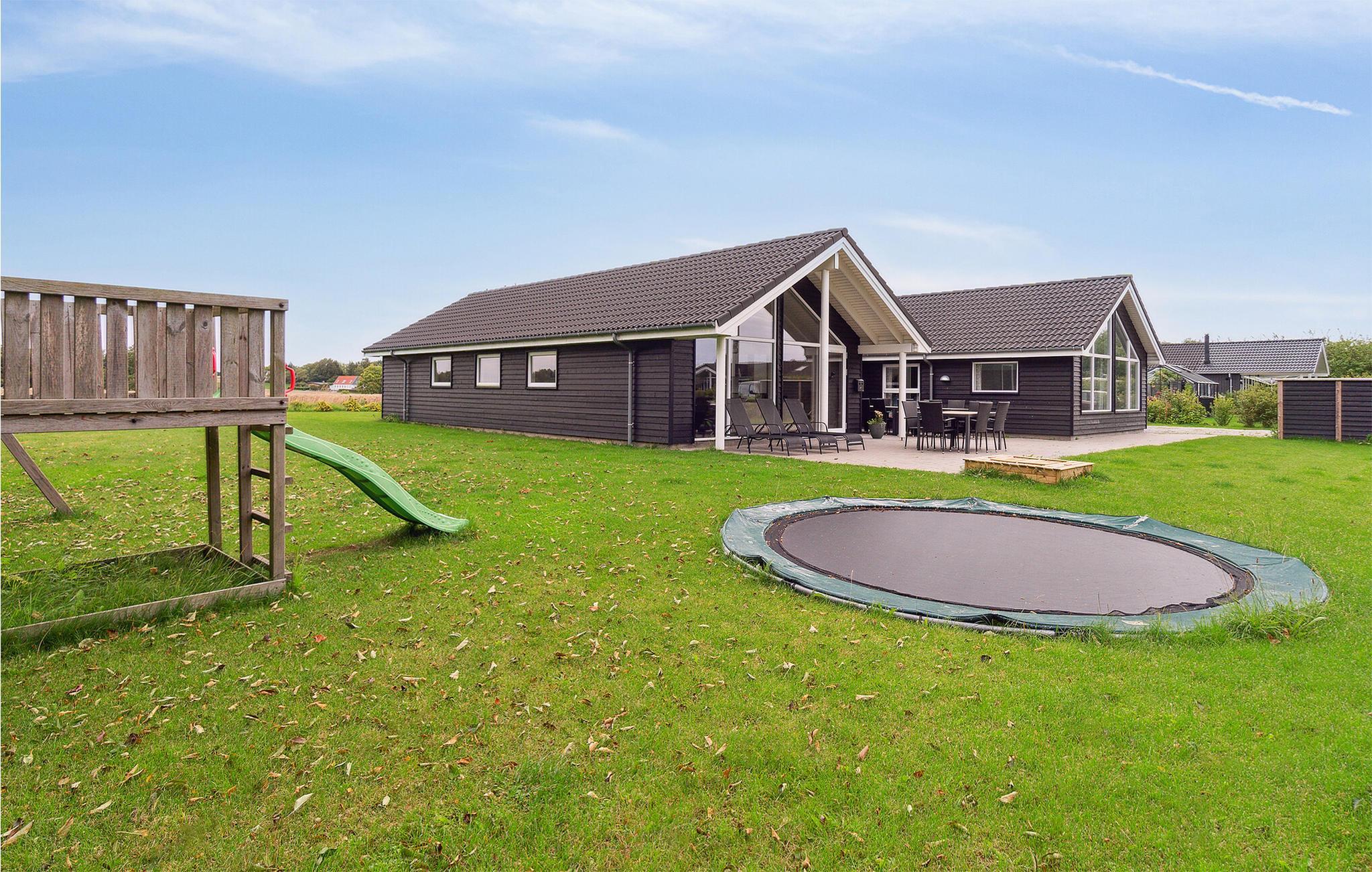 In ruhiger Lage am Råbylille Strand liegt dieses schöne Ferienhaus mit vielen Möglichkeiten für Aktivitäten im Haus und einem schönen Blick über die Landschaft. Schön und gepflegt, dies gilt auch für den Poolbereich, wo Sie schwimmen können, wärend Kinder allen Alters auf der Wasserrutsche spielen. Im großen Whirlpool können Sie so richtig entspannen. Setzen Sie den Urlaub im Aktivitätsraum fort, hier können Sie Billard, Tischtennis und andere Spiele spielen können. Wohn- und Esszimmer sind mit der gut ausgestatteten Küche verbunden, wo Sie leckere Gerichte zubereiten können. Auf den Terrassen können Sie die Sonne genießen, grillen oder den Rasen für alle möglichen Aktivitäten nutzen.
