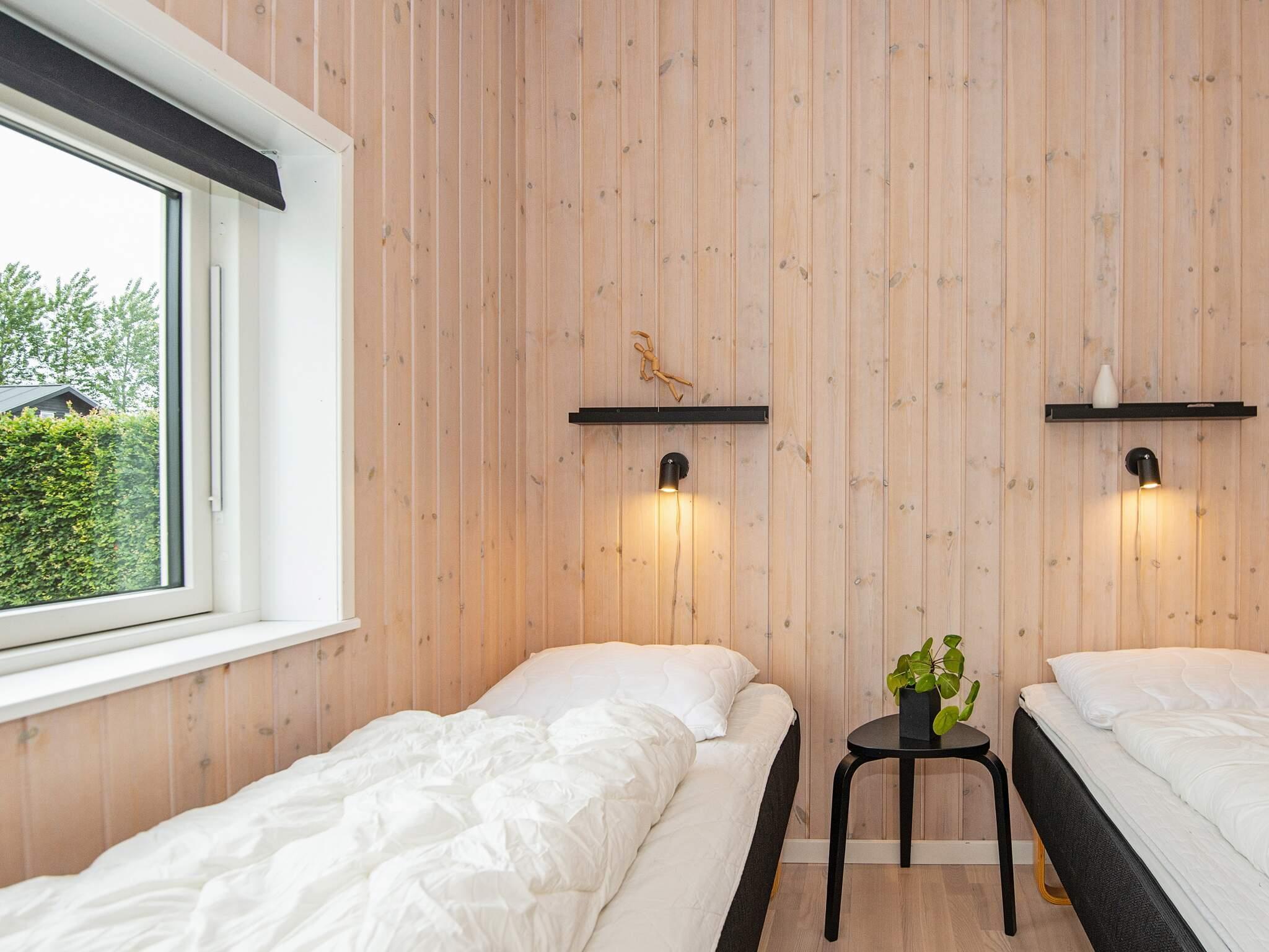 Es bietet drei Schlafzimmer mit jeweils zwei Schlafplätzen in Betten sowie ein großes Badezimmer mit u.a. Whirlpool für erholsame Stunden. Die Einrichtung ist durchgehend stilvoll und hell. Mitten im offenen Küchen-/Wohnbereich für das Familienleben steht ein attraktiver Kaminofen für kühlere Abende. Das Ferienhaus ist zudem mit einer energieeffizienten Wärmepumpe, die das ganze Jahr hindurch für angenehme Innentemperaturen im Haus sorgt, ausgestattet.