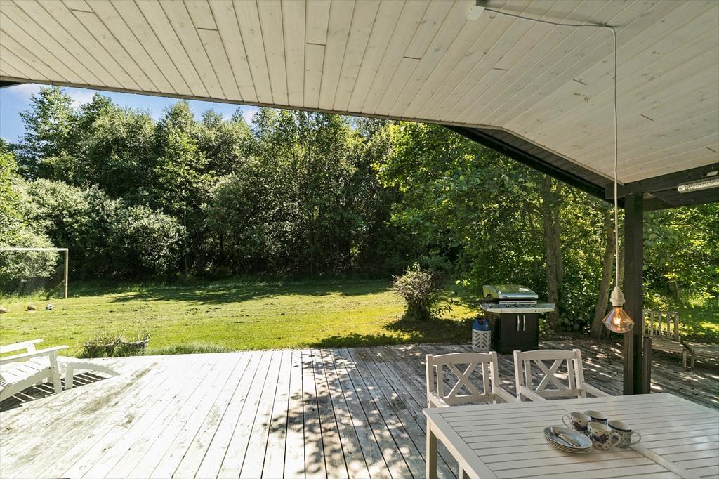 Das Haus liegt auf einem großen Grundstück in ruhiger Umgebung, wo du die Ferien in voller Entspannung genießen kannst. Die überdachte Terrasse mit Gartenmöbeln lädt zu gemütlichen Mahlzeiten im Freien ein – auch an kühleren Tagen.