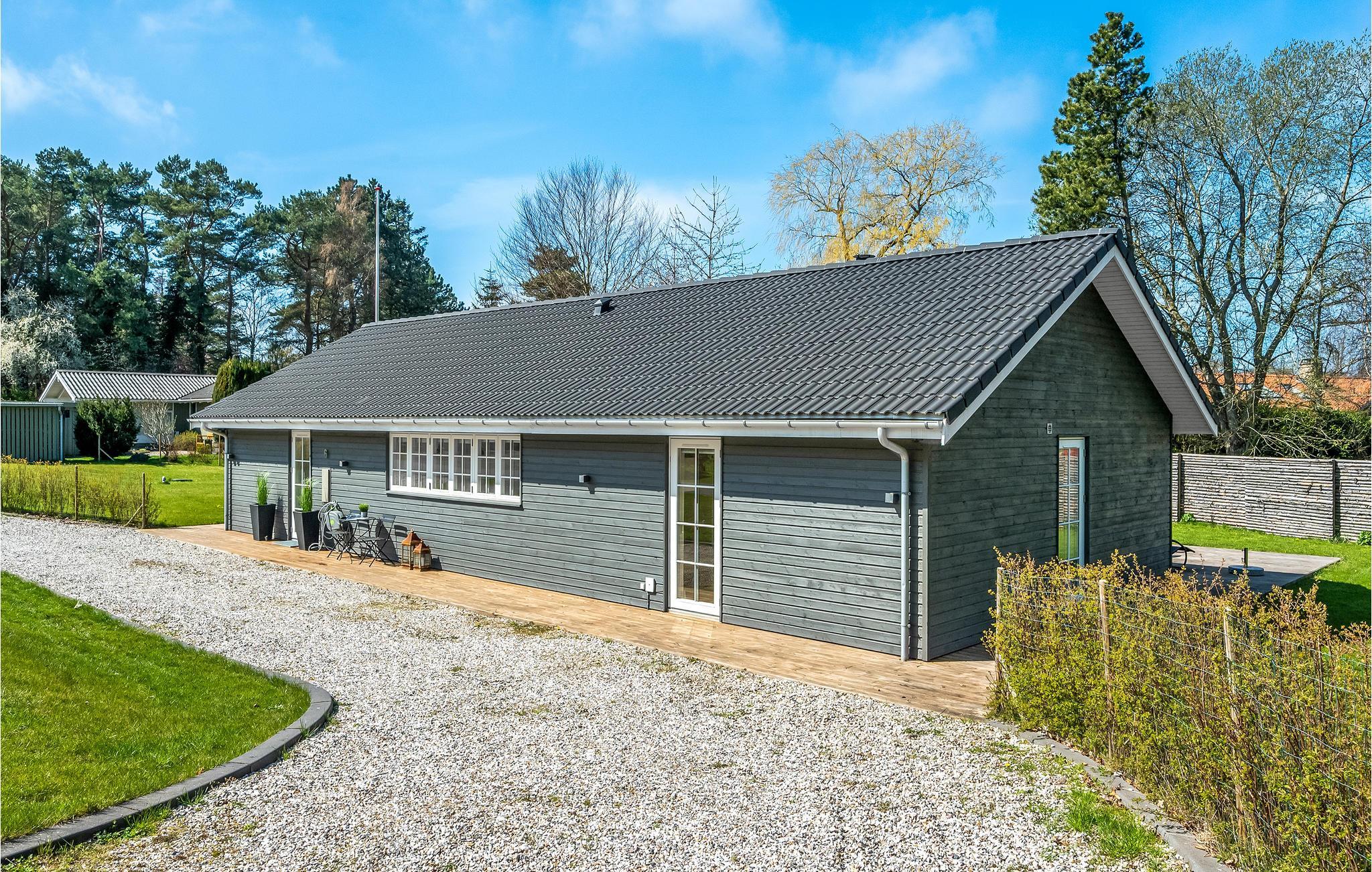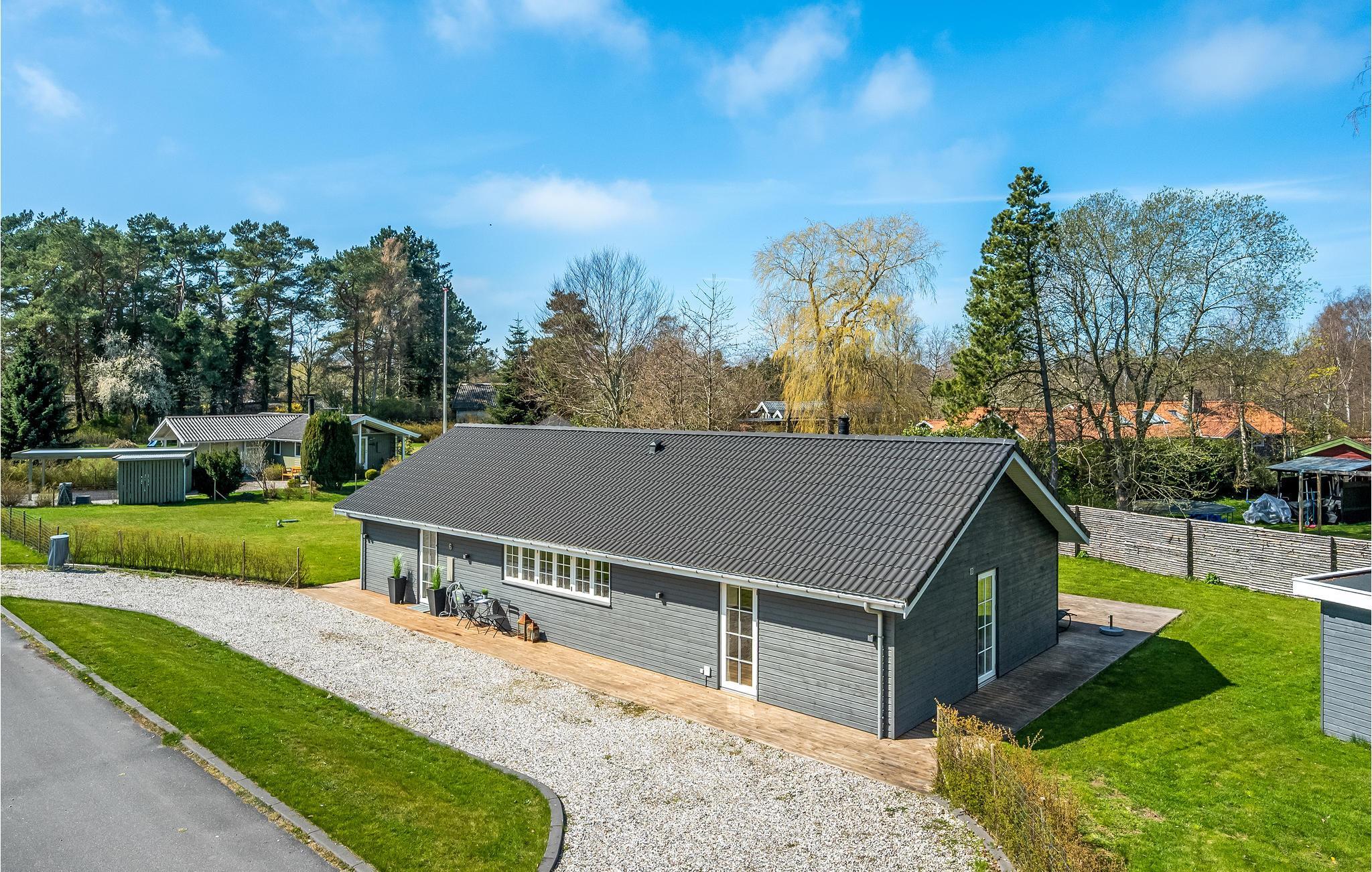 Schlichtes dänisches Ferienhaus nahe Rågeleje Strand mit großem Garten, Terrasse und moderner Ausstattung für erholsame Tage.