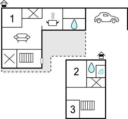 Badezimmer (nr. 2) - WC. Warmes und kaltes Wasser. Dusche