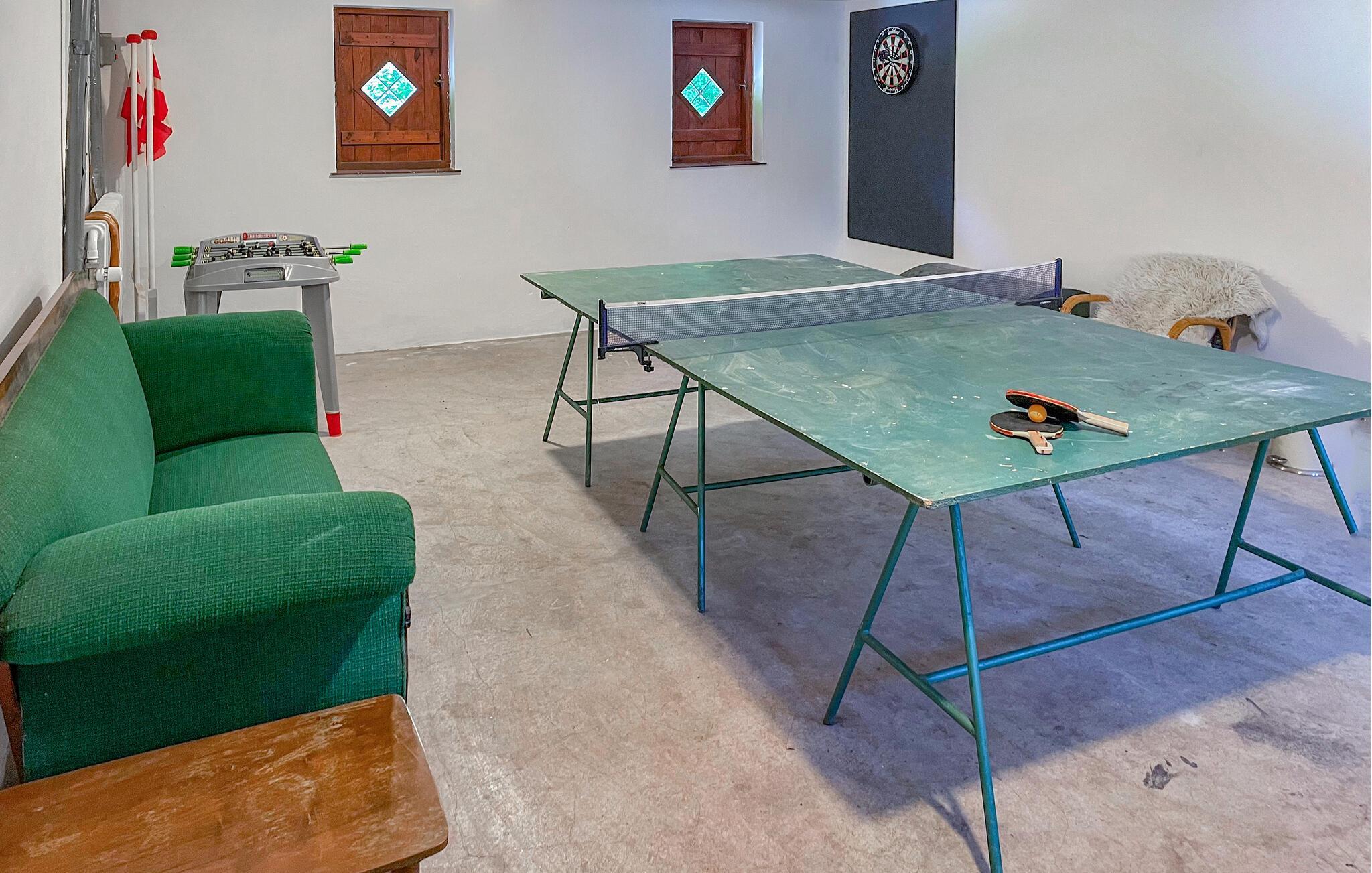 Dieses dreiflügelige Landhaus begrüßt Sie inmitten der landschaftlichen Idylle von Djursland und bietet reichlich Platz, um mit einer Gruppe oder der Großfamilie eine entspannte Auszeit zu genießen. Schwingen Sie in der farbenfrohen Küche den Kochlöffel und zelebrieren Sie gesellige Mahlzeiten an der langen Esstafel. Spielen Sie Tischtennis im Aktivitätsraum, lauschen Sie dem Knistern des Kaminfeuers bei einem Brettspiel im gemütlichen Wohnzimmer oder streamen Sie Ihre Lieblingsserie.