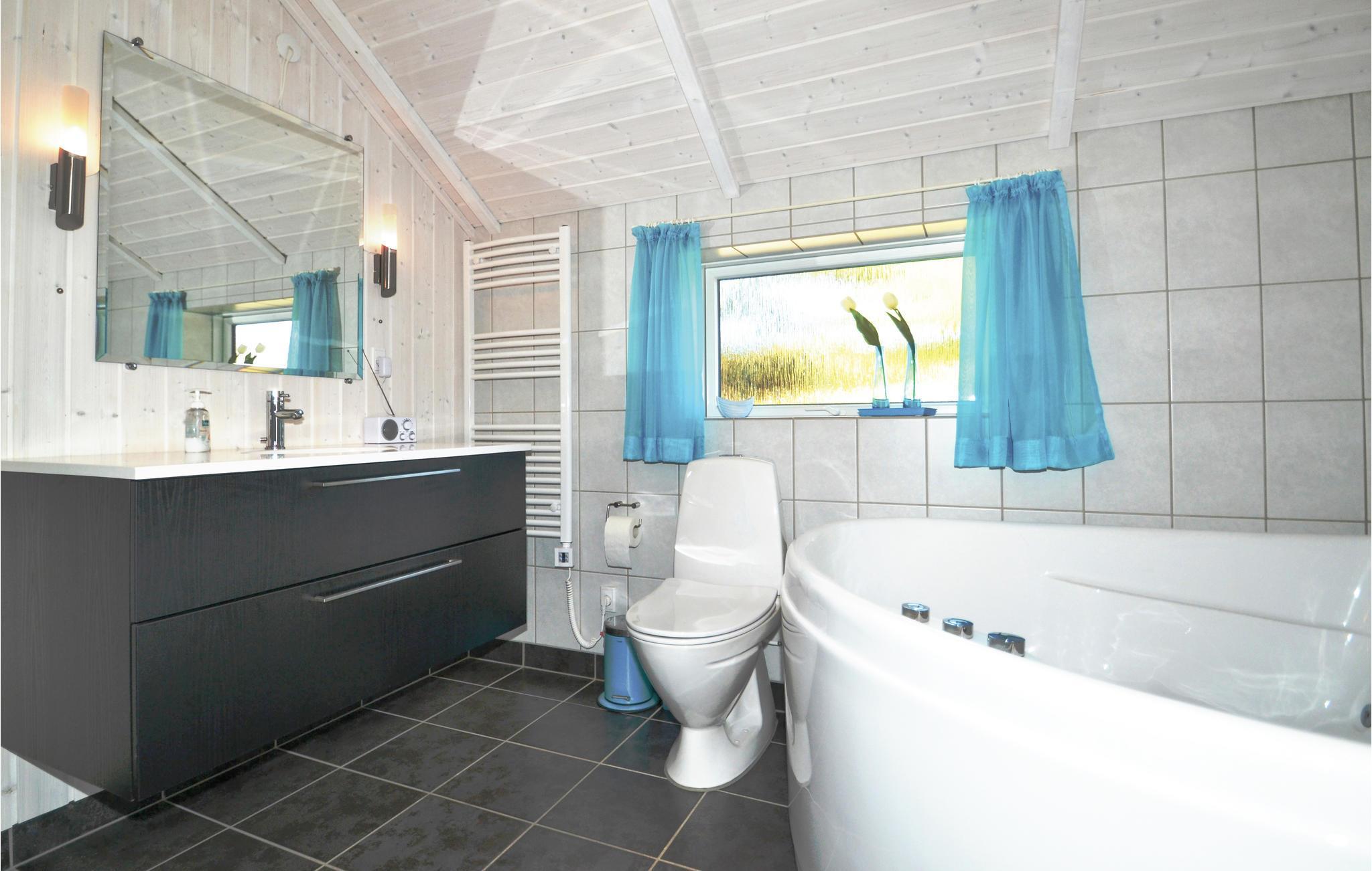 Dieses moderne Ferienhaus in Rindby Strand bietet Komfort, eine Whirlpool-Badewanne und liegt nahe am schönen Strand.