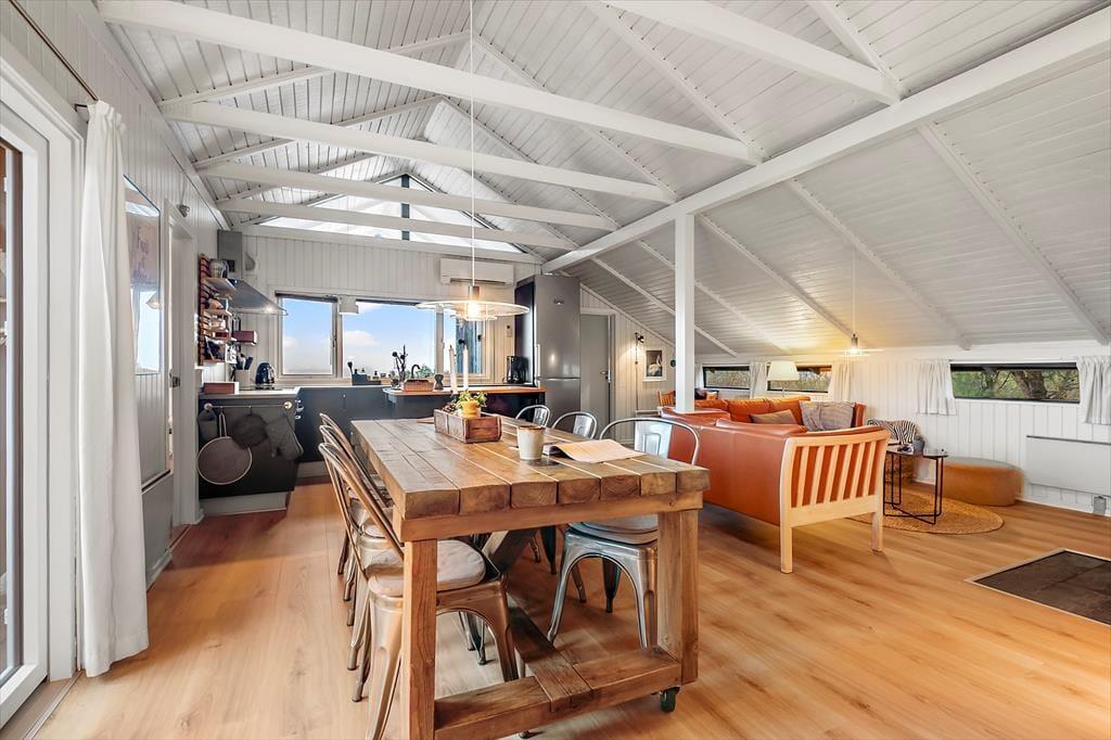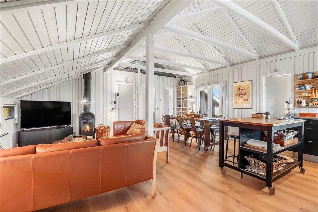 Dein Ferienhaus ragt stolz über einem Dünengrundstück auf, wodurch du vom Küchenfenster aus einen weiten Blick über Rindby genießen kannst, während du Kartoffeln schälst oder Kaffee kochst. Wer möchte, kann sich sogar an der Kücheninsel niederlassen und hier den Kaffee genießen - natürlich auch in der gemütlichen Sofaecke des Wohnzimmers in der Nähe des knisternden Kaminofens. Die behagliche Stube lädt zum Entspannen ein, und nach der letzten Modernisierung präsentieren sich die drei Schlafzimmer, die Waschküche und das Badezimmer deines Hauses in einem gepflegten und gut ausgestatteten Zustand. Kurz gesagt, bietet dein Ferienhaus eine ideale Umgebung, um zur Ruhe zu kommen und gemeinsame Momente zu genießen.